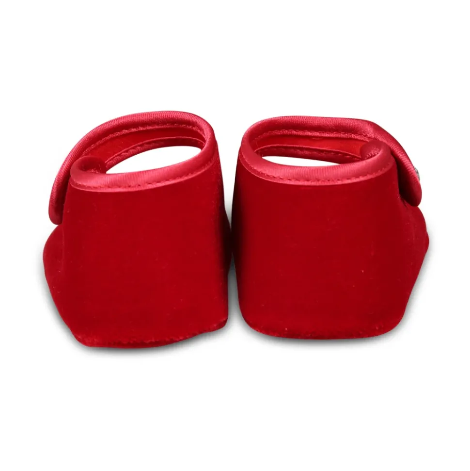 Upgrade de stijl van je kleintje met deze Monnalisa rode fluwelen balletflats. Gemaakt in Italië, deze ballerina’s hebben een kristallen band en knoopdetail, vervaardigd uit 100% polyester.