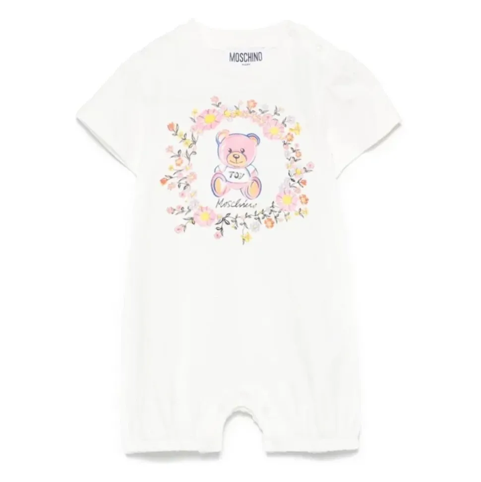 De Moschino Romper en Hoed Set combineert speelse prints aan de voorkant met alledaags comfort. De korte romper wordt geleverd met een bijpassende vissershoed voor een gemakkelijke, complete outfit. Belangrijkste kenmerken: Multicolor | Bianco | Katoen | Zachte katoenen jersey | Rekbare stof | Drukknoopsluitingen voor snel verschonen | Inclusief bijpassende bucket-style hoed | Print op de voorkant | Korte onesie silhouet | Bijpassend vissershoed patroon | Samenstelling & verzorging: 95% katoen, 5% elastaan | Machinewas op 30°C. Niet chemisch reinigen. Niet in de droger. Strijken op max. 110°C zonder stoom. Gebruik een mild wasmiddel zonder bleekmiddel. Volg het wasetiket.