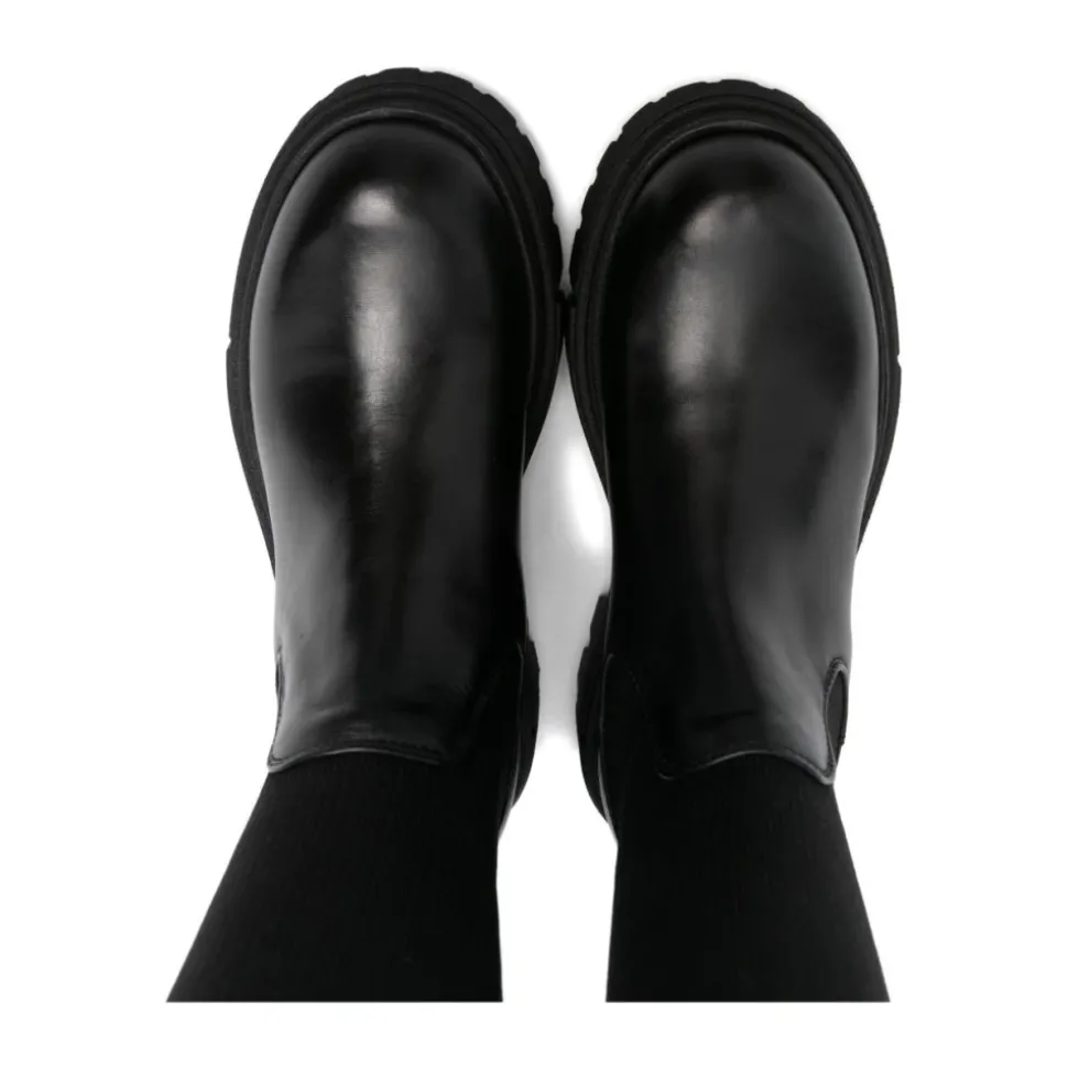 De Elisabetta Franchi rondneus laars om aan te trekken combineert een bovenwerk van kalfsleer met een geribbelde sokinzet en een rubberen zool voor gemakkelijk aantrekken en alledaagse grip. Het rondneus, aantrek silhouet is ontworpen voor comfortabel, praktisch gebruik. Belangrijkste kenmerken: Zwart | Kalfsleer | Rubberen zool voor betrouwbare grip | Instapper / aantrek sluiting | Stretch inzetstuk voor gemakkelijker aan- en uittrekken | Ronde neus | Geribbelde sokinzet | Aantrek silhouet | Afmetingen & pasvorm: Hakhoogte: 4 cm | Samenstelling & verzorging: Voering: textiel 100% | Buitenkant: textiel 100% | Buitenkant: kalfsleer 100% | Zool: rubber 100% | Afnemen met een zachte, vochtige doek. Gebruik een speciale leer reiniger voor leren delen. Niet in de wasmachine. Laten drogen aan de lucht, uit de buurt van directe warmte.