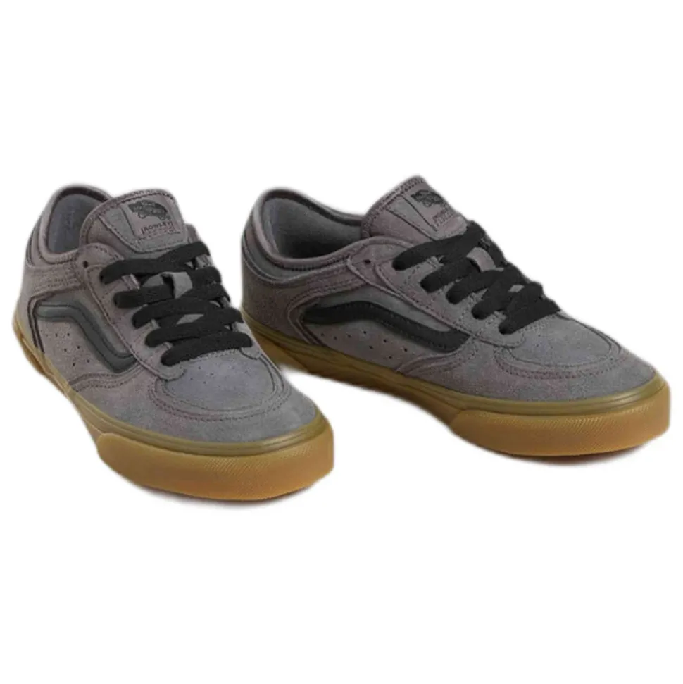 De Vans Rowley Shoe combineert een leren bovenwerk met een rubberen zool voor skate-geïnspireerde dagelijkse schoenen. Model geïdentificeerd als Rowley — productcode VN000E52DMU1. Belangrijkste kenmerken: Grijs | Gris | Leer | rubberen zool | Textiele voering | Skate-geïnspireerd silhouet | Samenstelling & onderhoud: Leer | Textiel | Rubber