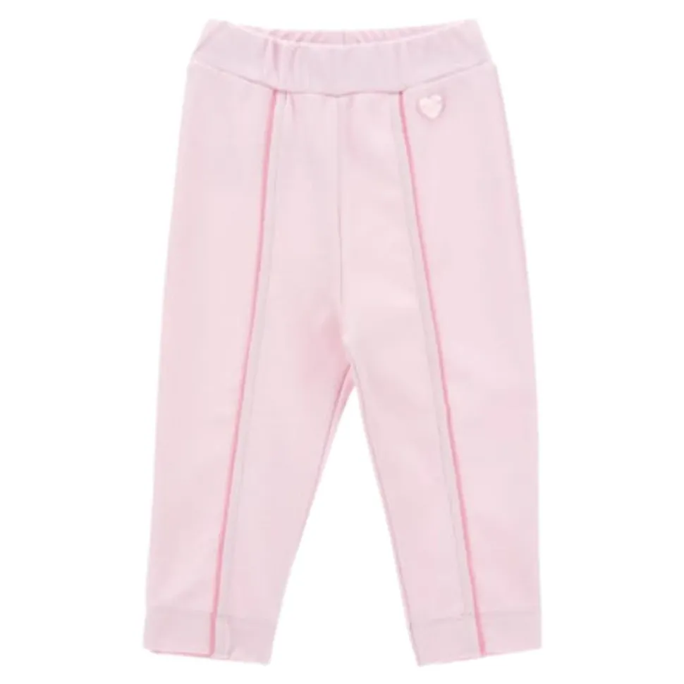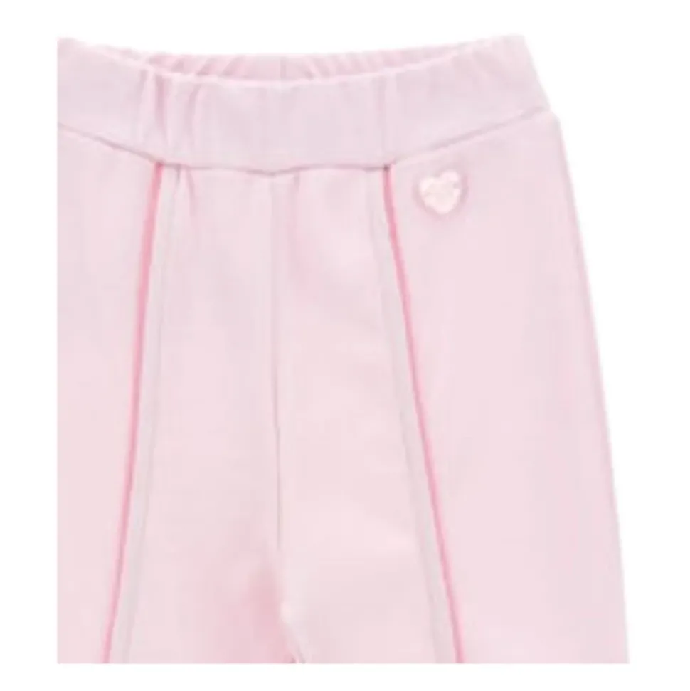 Monnalisa Kids roze broek, gemaakt van zachte Milano-stitch jersey, met elastische taille en satijnen piping, hartlogo-applicatie aan de zijkant vooraan. Samenstelling: 75% viscose 21% polyamide 4% elastaan. Gemaakt in Italië.