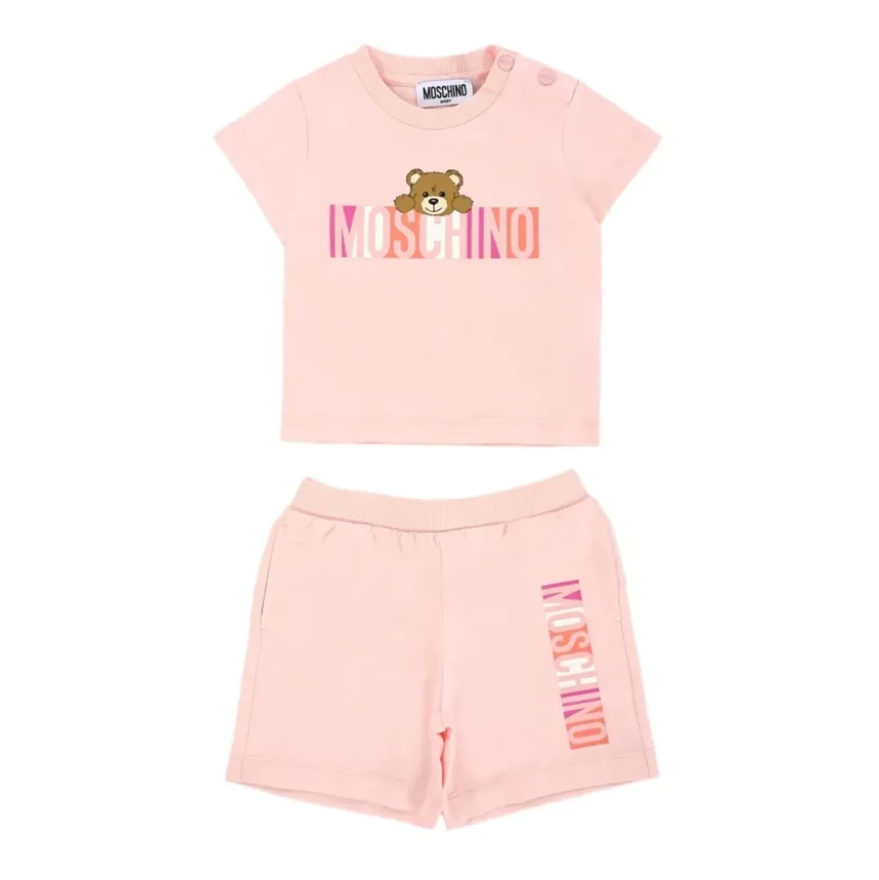 Kleed je kleine man in stijl met deze Moschino Kids Set. Gemaakt van 100% katoen, is deze set perfect voor babyjongens. Verkrijgbaar in verschillende maten.