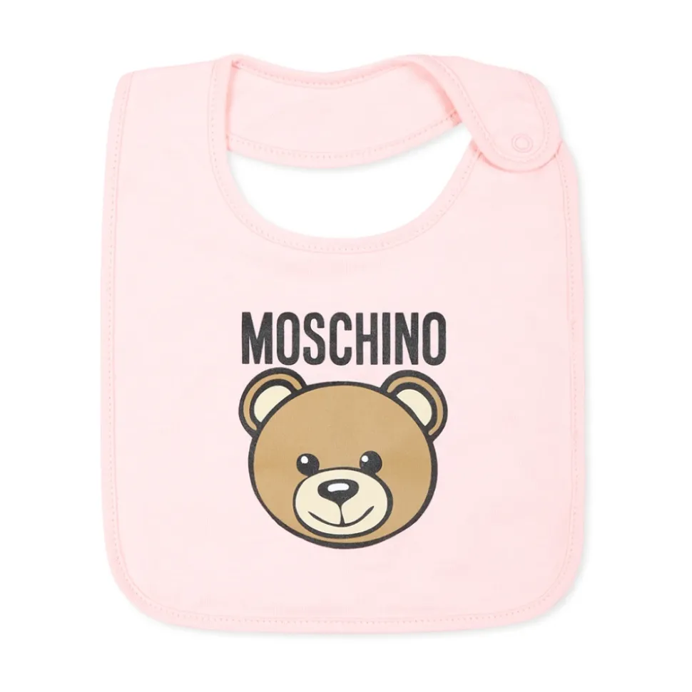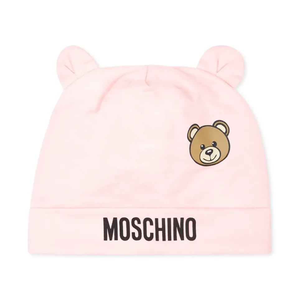 Kleed je kleintje in stijl met deze Moschino kinderset van roze katoen, bestaande uit een muts met oren, versierd met een Teddy Bear-print en zwart logo, en een slab met een bijpassend ontwerp. Gemaakt van 100% katoen, is deze set zowel schattig als praktisch. Machinewasbaar op 30°C.