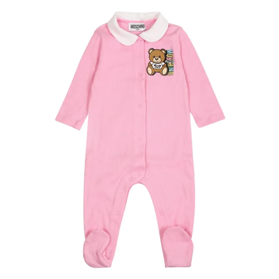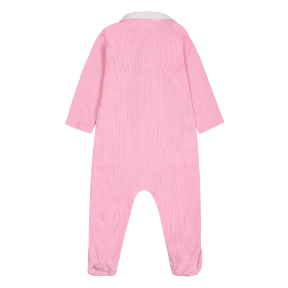 Kleed je kleintje in stijl met deze schattige roze Moschino romper. Gemaakt van katoenen jersey, met lange mouwen, een Peter Pan-kraag, voetjes, drukknoopsluiting aan de voorkant en tussen de benen. Versierd met een schattige Teddybeer en een multicolor logo op de borst. Samenstelling: 95% katoen, 5% elastaan. Makkelijk te onderhouden, machinewas op 30°C.