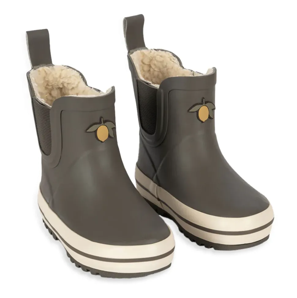 RUBBEREN LAARZEN van het gerenommeerde Deense merk Konges Sløjd zijn een onbetwist synoniem voor elegantie en een focus op functionaliteit. De harmonieuze lijn van klassieke, ronde kinderregenlaarzen wordt uitgedrukt door een korte schacht, die de voet perfect beschermt, terwijl de versterkte hiel en neus zorgen voor veiligheid in alle omstandigheden. Hoogwaardig, zacht rubber bestand tegen vocht, in combinatie met een fluweelzachte voering die bont imiteert, zorgt voor gezelligheid en langdurige thermische isolatie. De minimalistische, effen groene kleur geeft de schoenen een universeel maar verfijnd karakter, waardoor ze een subtiele toevoeging zijn aan de outfit van elk kind. Flexibele zij-inzetstukken verbeteren de pasvorm en maken het gemakkelijker om de laarzen aan te trekken, terwijl een discreet lipje aan de achterkant gemak toevoegt. Een decoratief logo in de vorm van een gele hommel aan de voorkant benadrukt het unieke karakter van deze laarzen, waarbij hedendaagse esthetiek wordt gecombineerd met kinderlijk plezier. WAAROM IS HET DE MOEITE WAARD OM DIT PRODUCT TE KOPEN? * Verfijnde bescherming voor de voeten van uw kind in alle weersomstandigheden * Uitzonderlijk comfort dankzij het fijn afgewerkte interieur * Elegante, neutrale kleur en een origineel ontwerpdetail * Uitzonderlijk gemakkelijk aan te trekken dankzij flexibele inzetstukken en lipje * Duurzaamheid en functionaliteit, onderschreven door een gerespecteerd Deens merk 21: 142 mm 22: 147 mm 23: 155 mm 24: 162 mm 25: 167 mm 26: 174 mm 27: 182 mm 28: 188 mm 29: 195 mm 30: 201 mm 31: 208 mm 32: 215 mm