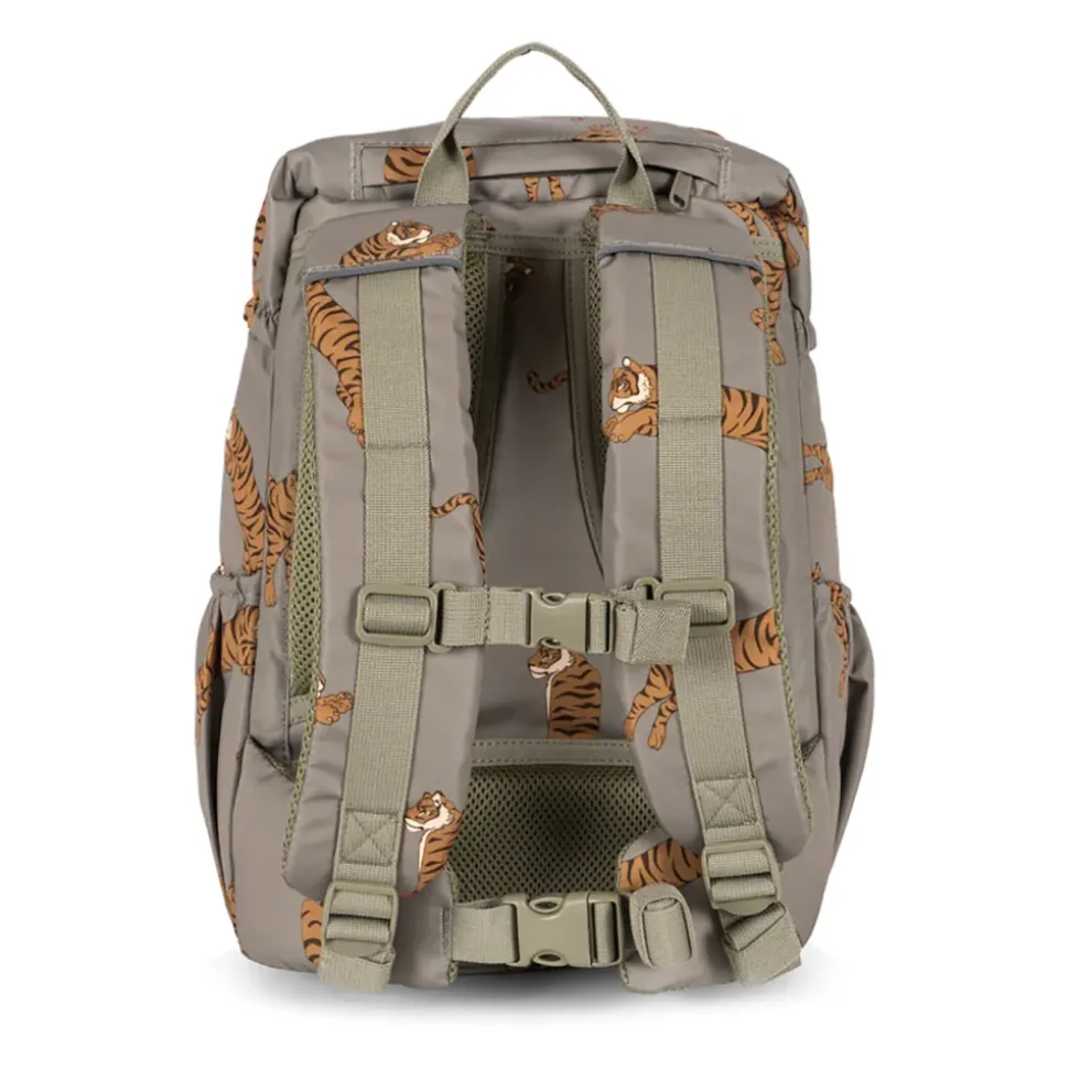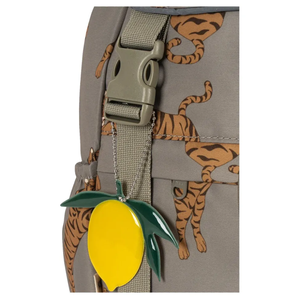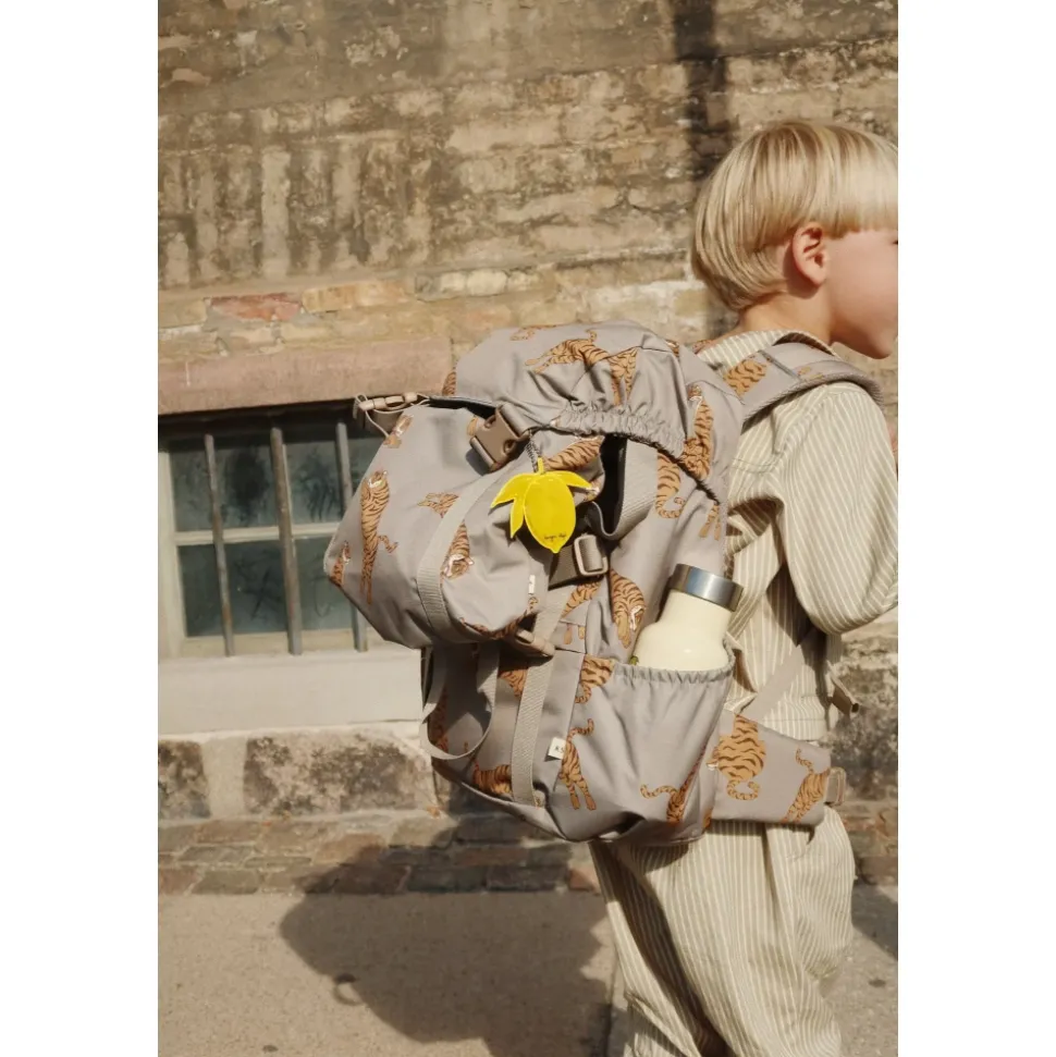 DIERENMOTIEF RUGZAK is een verfijnde mix van praktisch nut en kinderlijke verbeelding, ontworpen door het gerenommeerde merk Konges Sløjd. Vervaardigd in een elegante grijstint, wordt het stuk tot leven gebracht door een artistiek tijgerpatroon – een subtiele maar gedurfde accent dat de uniekheid van het product benadrukt. De klassieke vorm met afgeronde randen en meerdere compartimenten zorgt voor gebruiksgemak en georganiseerde ruimte voor kinderschatten. De gladde, waterdichte buitenstof en ergonomische, verstelbare banden garanderen comfort en duurzaamheid, zelfs bij dagelijks gebruik door de jongste gebruikers. Het ontwerperscitroenvormige hangertje met groene bladeren voegt originaliteit toe en benadrukt het exclusieve erfgoed van de collectie. WAAROM IS HET DE MOEITE WAARD OM DIT PRODUCT TE KOPEN? * Uniek tijgermotief met een luxueus karakter * Comfortabel, en waterdicht materiaal * Functionele zakken en talrijke compartimenten * Verstelbare, brede banden die het comfort van uw kind garanderen * Originele hanger die aandacht voor detail aantoont * Product van het gerenommeerde, merk Konges Sløjd Hoogte: 36 cm Breedte: 26 cm