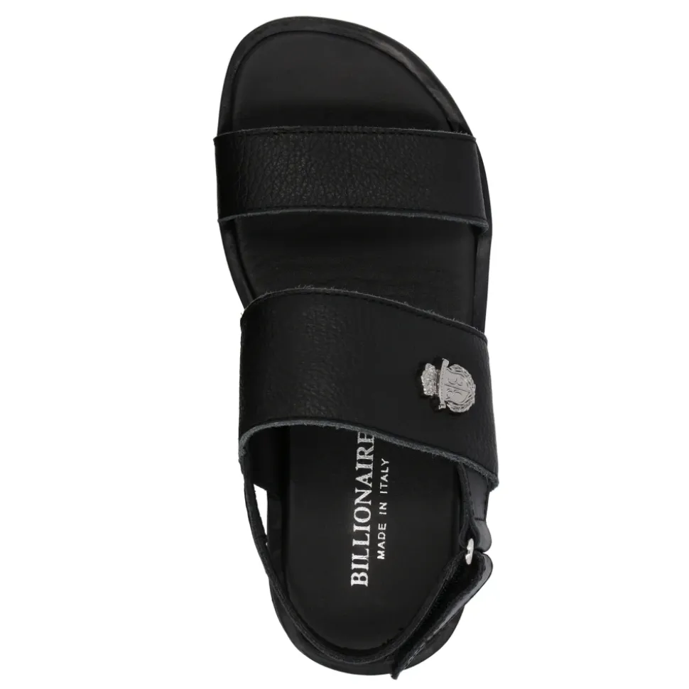 De Billionaire Sandals Flat combineren een dubbelband nappa design met een verstelbare klittenbandsluiting voor een veilige, dagelijkse pasvorm. Ze zijn voorzien van een schokabsorberend, met leer gevoerd voetbed en een rubberen logozool voor extra comfort en grip. Belangrijkste kenmerken: Zwart | Kalfsleer | Met leer gevoerd voetbed | Rubberen buitenzool voor grip | Verstelbare klittenbandsluiting | Schokabsorberend voetbed | Dubbelband nappa design | Maison embleem op één band | Samenstelling & verzorging: Bovenkant: 100% kalfsleer | Voering: 100% kalfsleer | Buitenzool: 100% rubber