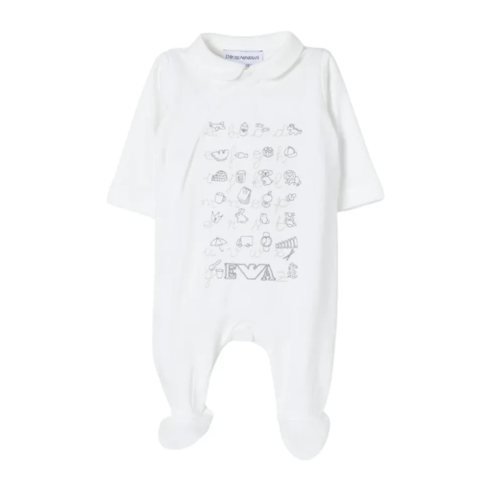 Kleed je kleintje in comfort en stijl met deze schattige Emporio Armani baby playsuit. Gemaakt van 100% katoen, met een charmant printdetail, perfect voor dagelijks gebruik.