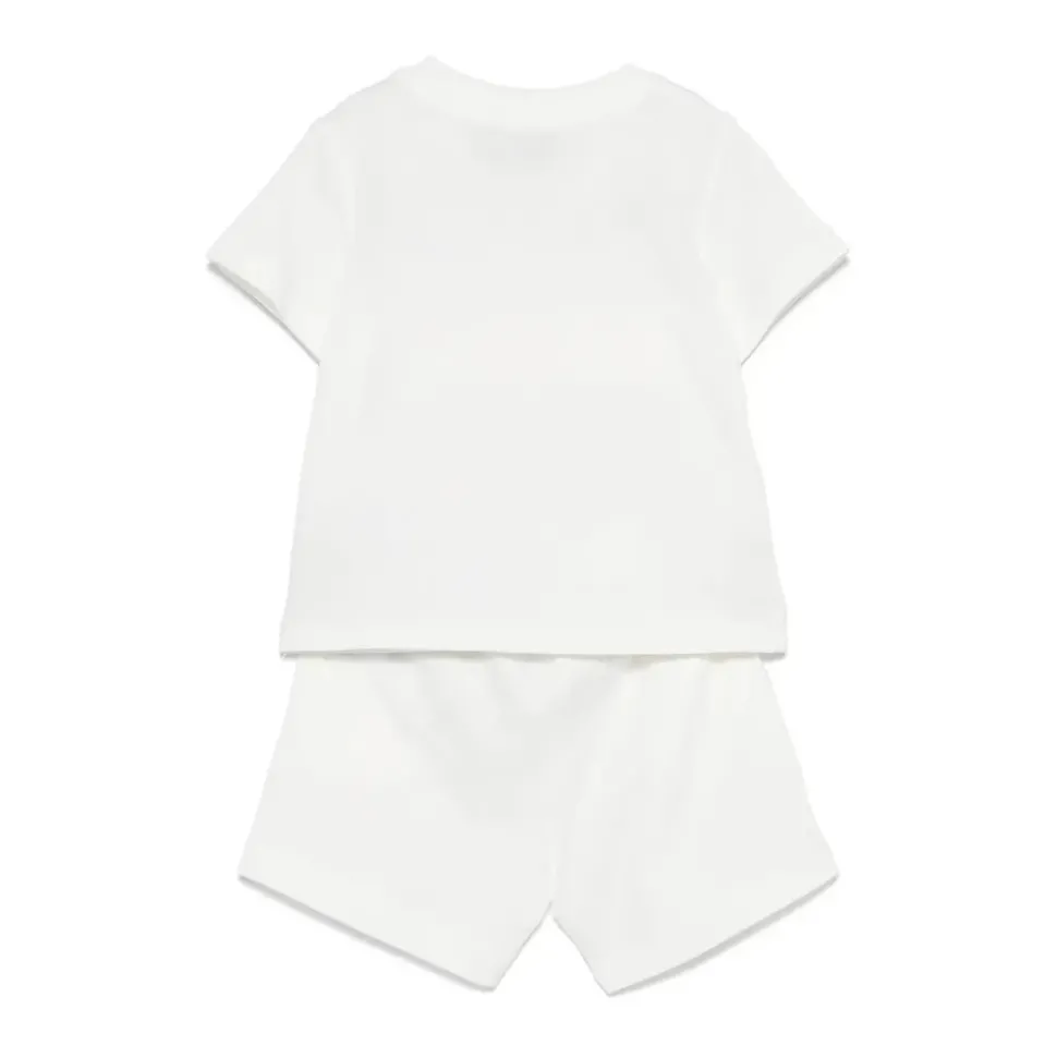 Kleed je kleintje in stijl met deze Moschino Kids set, met een charmante Teddybeer-print. Deze set is gemaakt van 100% katoen en is perfect voor dagelijks comfort en stijl. Belangrijkste kenmerken: Wit | Katoen | Teddybeer-print | Samenstelling en onderhoud: 100% katoen | Machinewas koud, droogtrommel laag.