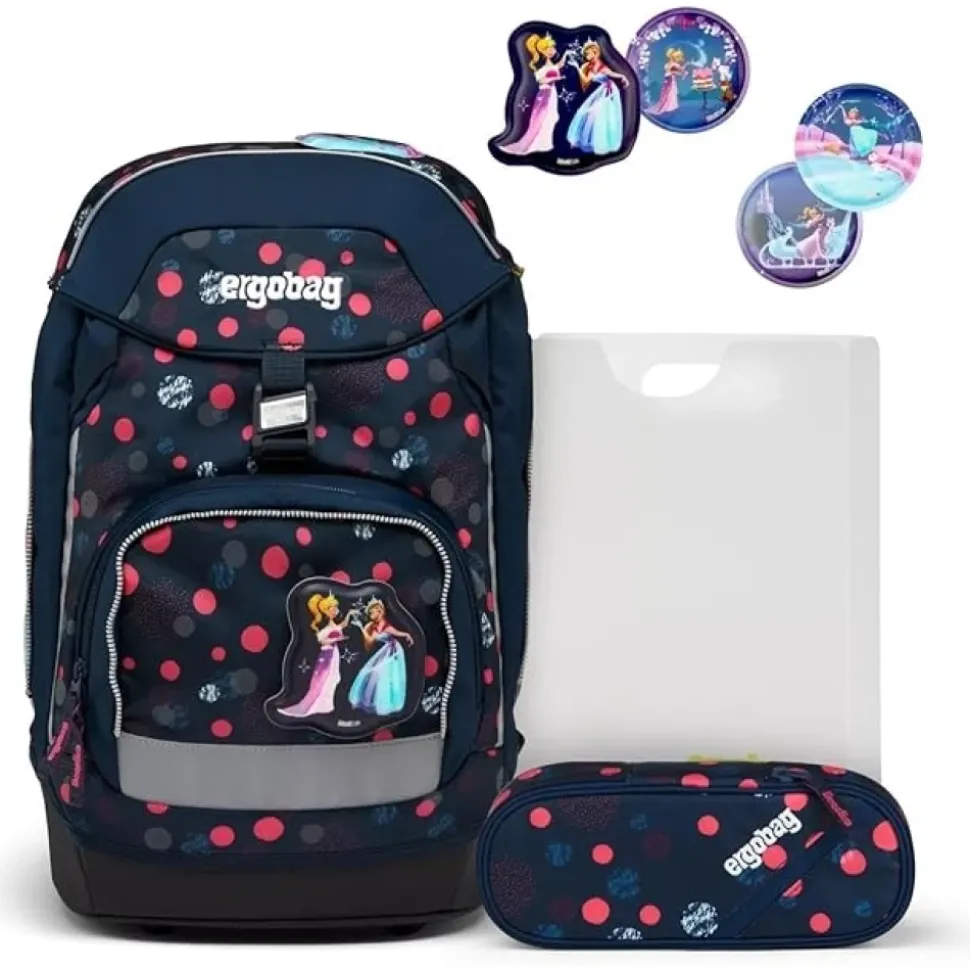 De Ergobag Set zaino + portaquaderni + kletties + astuccio is een ergonomische rugzakset ontworpen voor dagelijks schoolgebruik, die verstelbare ondersteuning en eenvoudige personalisatie combineert met , water- en vuilafstotende materialen. Belangrijkste kenmerken: Multicolor | Blu | Rosa | PET | Waterafstotend | Vuil-/vlekbestendig | Reflecterende prints voor hoge zichtbaarheid | Allround reflectoren | ‘Your-Size-System’ in hoogte verstelbaar ondersteuningssysteem | Brede, gevoerde heupflappen voor verbeterde pasvorm | Magnetische sluiting voor eenvoudig openen en sluiten | Ring voor Hangies bevestiging | Aanpasbaar met Kletties en Hangies | Multicolor grafisch ontwerp | Personaliseerbaar voorpaneel | Reflecterende print accenten | Afmetingen & pasvorm: Afmetingen: 28 x 40 x 25 cm (L/B/H) | Gewicht: 1100 g | Volume: 20 L | In hoogte verstelbaar ondersteuningssysteem (‘Your-Size-System’) | Goede pasvorm dankzij brede, gevoerde heupflappen | Ergonomische ondersteuning bij het dragen van de lading | Samenstelling & onderhoud: PET | Afnemen met een vochtige doek; niet in de machine wassen; aan de lucht laten drogen.