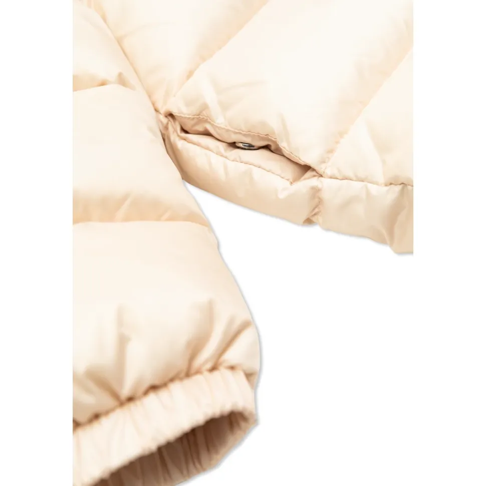 DE SHARON DONSJAS van Moncler Enfant is het toonbeeld van verfijnde klassieke stijl in een kindereditie. De reguliere pasvorm combineert naadloos comfort met volledige bewegingsvrijheid – perfect voor jonge avonturiers. De subtiele crèmekleur van de glanzende stof en het minimalistische, effen kleurontwerp geven deze jas een werkelijk verfijnd karakter. De natuurlijke donsvulling en polyamidelaag bieden uitstekende bescherming tegen de kou en optimaal thermisch comfort, zelfs op de koudste dagen. Een praktische capuchon en volledige rits zorgen voor functionaliteit voor dagelijkse activiteiten, terwijl de elastische rand aan de mouwen effectief beschermt tegen de wind. De look wordt afgemaakt met een herkenbaar vilten merklogo op de linkerschouder – een discreet symbool van prestige en elegantie. WAAROM DIT PRODUCT KIEZEN? * Elegant, minimalistisch ontwerp geïnspireerd op de laatste trends * Materialen van de hoogste kwaliteit en nauwgezet vakmanschap * Optimale thermische isolatie dankzij natuurlijke donsvulling * Uitzonderlijk comfort en vrijheid tijdens kinderactiviteiten * Prestige gemarkeerd door het Moncler Enfant-logo