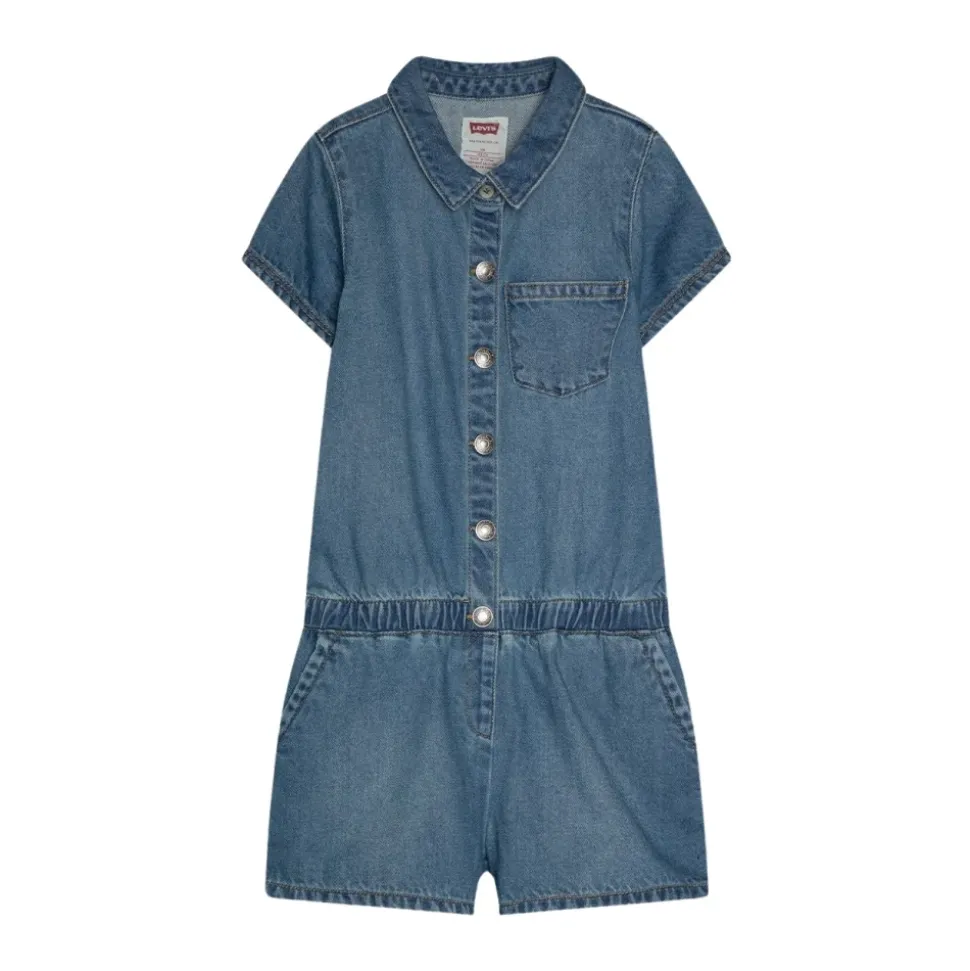 De Levi’s Short Denim Overall is een lichtgewicht, korte overall ontworpen voor warm weer, met knopen aan de voorkant en een elastische tailleband voor gemakkelijk aankleden. Belangrijkste kenmerken: Blauw | Blu | Katoen | Lichtgewicht | Klaar voor de zomer | Elastische taille | Knoopsluiting aan de voorkant | Hartzak aan de zijkant | Achterzakken | Korte mouwen | Shirtkraag | Denim overall silhouet | Korte lengte | Samenstelling & verzorging: 100% Katoen | Machinewas op 30°C; niet strijken; niet wassen met lichte kleuren; geen bleekmiddel gebruiken.