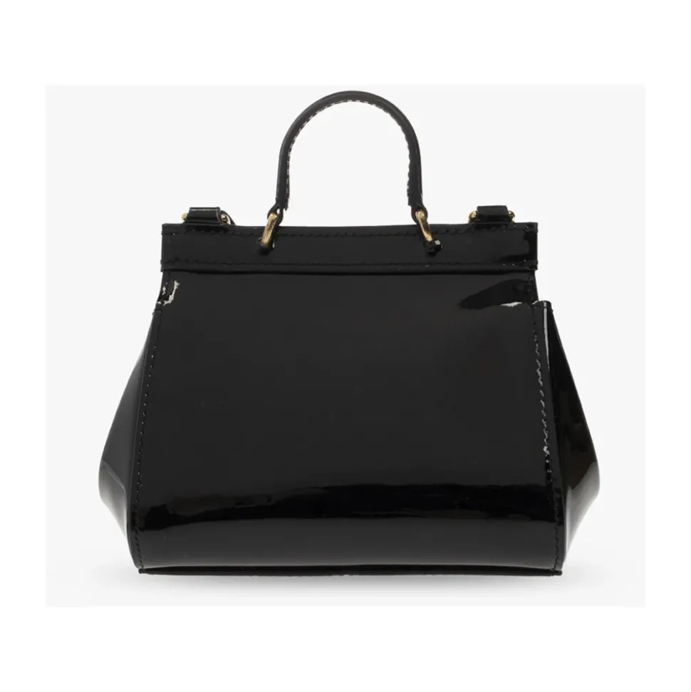 Zwarte ‘Sicily’ schoudertas van Dolce & Gabbana Kids. Gemaakt van patent kalfsleer, dit model heeft drukknopen, goudkleurig logo-applicatie, verstelbare schouderband, half ronde handvat, een intern compartiment en hardware in goudkleurig metaal.