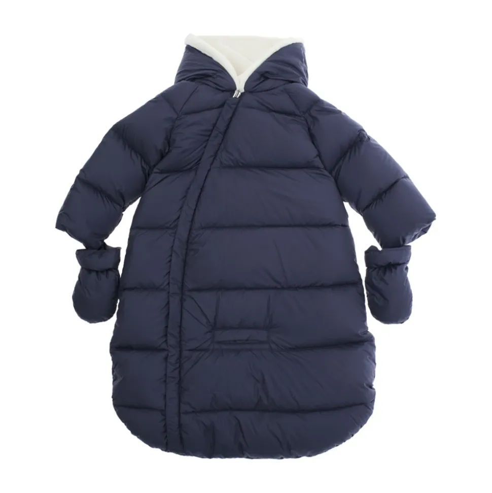 Het Il Gufo Sleeping Sack gewatteerd jack met vaste capuchon en afneembare handschoenen in technische stof combineert geïsoleerde donswarmte met een slaapzak-silhouet en een afneembare handschoenoptie voor extra handbescherming bij koud weer. Belangrijkste kenmerken: Blauw | Donsisolatie | Warmtebehoud | Vaste capuchon | Afneembare handschoenen | Slaapzak-silhouet | Technische buitenstof
