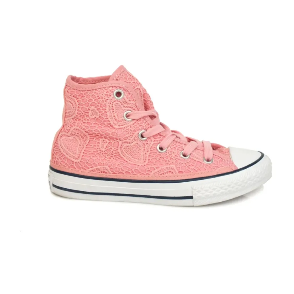 Converse sneakers met een tweekleurig, geborduurd textiel bovenwerk en een rubberen zool. Gemaakt voor dagelijks gebruik met een klassieke ronde neus en vetersluiting. Belangrijkste kenmerken: Roze | Wit | Textiel | Rubberen zool | Vetersluiting | Ronde neus | Geborduurd detail | Tweekleurig design | Samenstelling & onderhoud: Bovenkant: Textiel | Voering: Textiel | Zool: Rubber