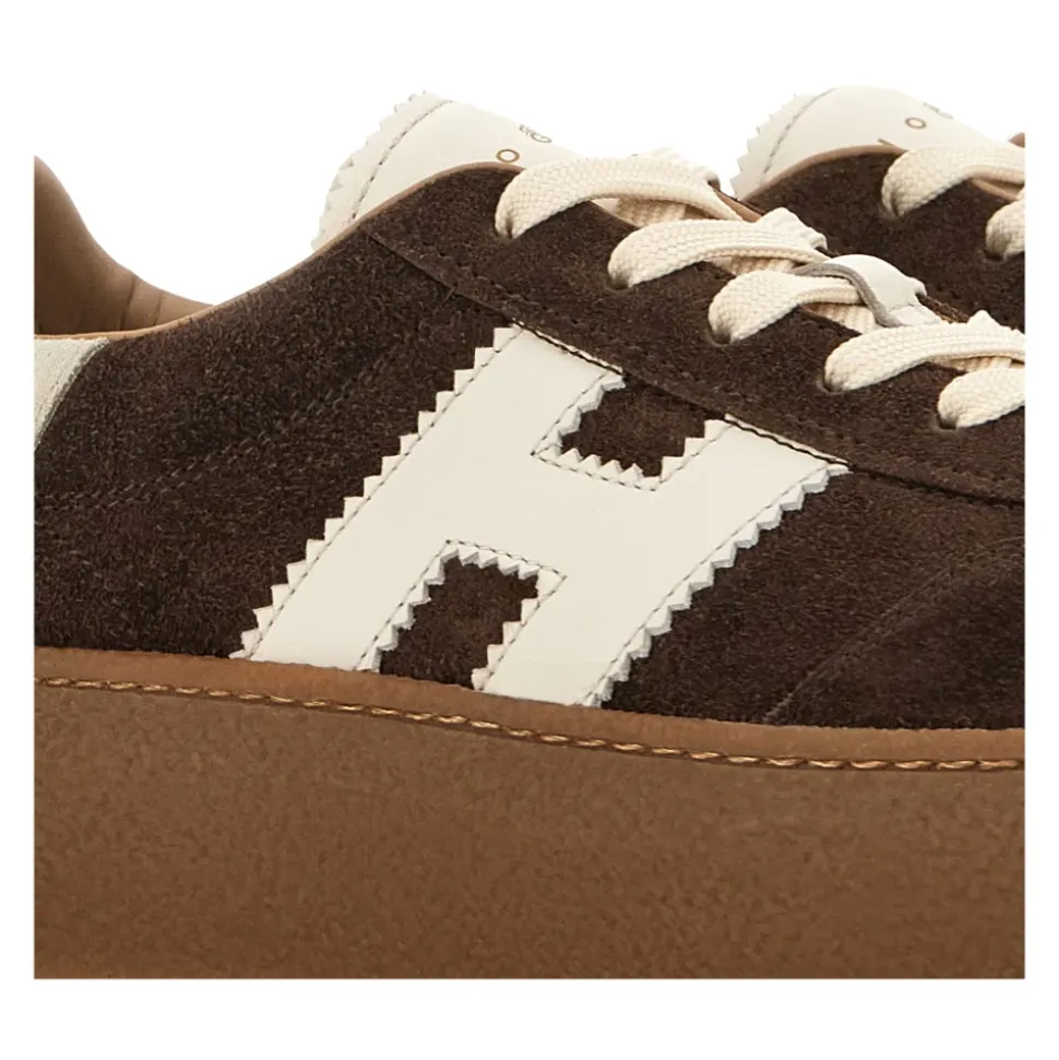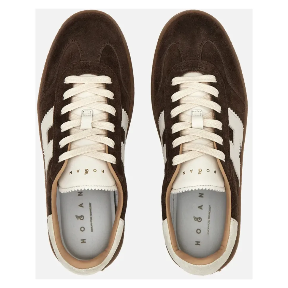 Upgrade je sneakerstijl met deze bruine Hogan ‘Cool’ lage sneakers voor vrouwen. Gemaakt met een suède bovenwerk en platformzool, met een beige suède hielkap, glad leren ‘H’ logo en nappaleren details. Compleet met een logopatch op de tong, amberkleurige rubberen platformzool en memory foam inlegzool voor de hele dag comfort. Zoolhoogte: 5,6 cm. Hogan valt over het algemeen groot uit. Overweeg een maat kleiner te nemen.
