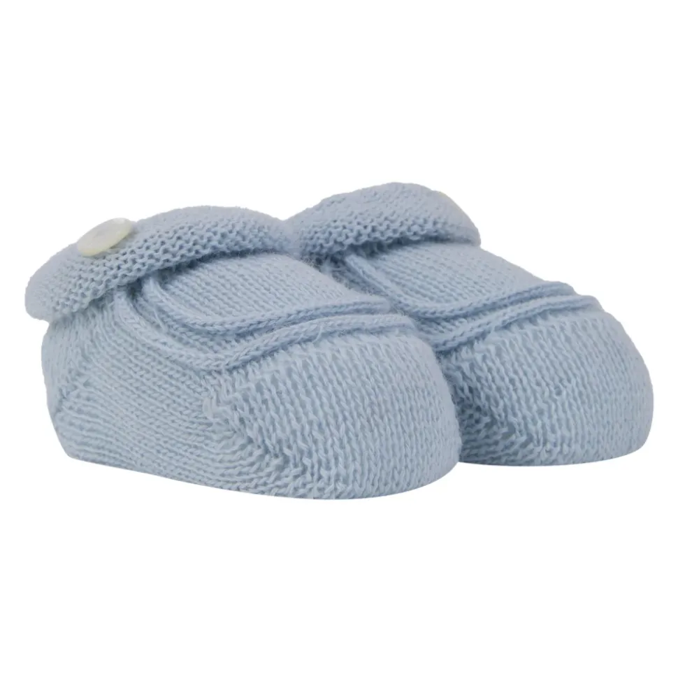 Zachte kindersokken gemaakt in Italië. Gemaakt van gebreide stof met een verhoogde textuur en versierd met een kleine knoop, deze geven uw kleintje een vleugje onmiskenbare originaliteit. De omhullende lichtblauwe kleur is gemakkelijk te combineren met elke romper. Houdt de kleintjes warm, zelfs op de koudste dagen. Gallo: belichaamt kwaliteit sinds 1927.