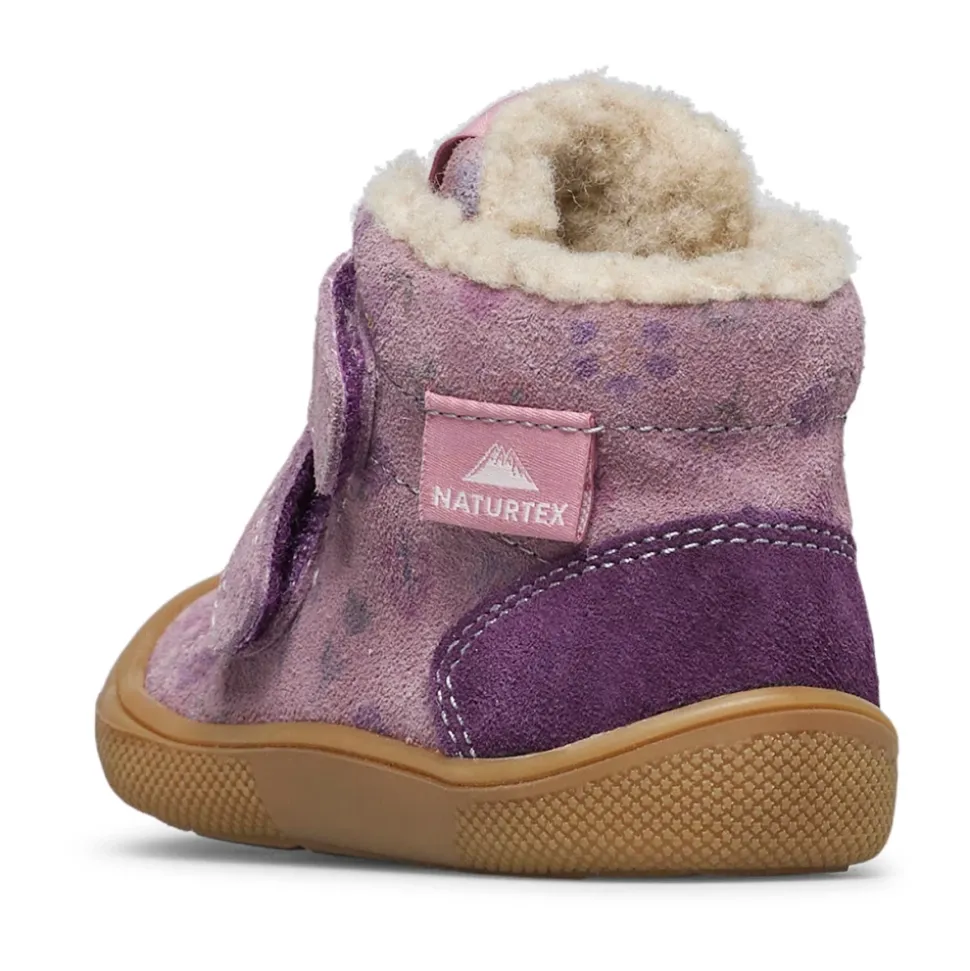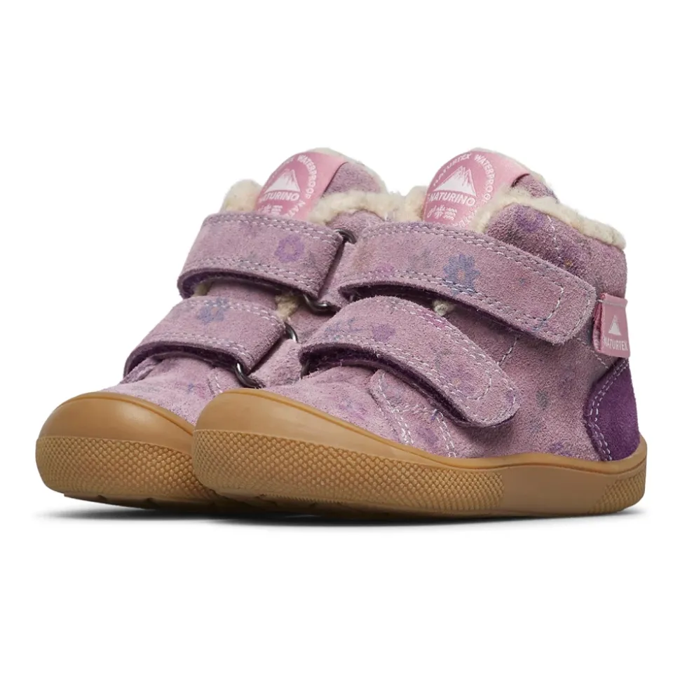 Naturino Spinni VL WP. suède enkellaarsjes combineren een zachte suède bovenkant met een ton-sur-ton bloemenprint en een dubbele klittenbandsluiting voor eenvoudig gebruik. Wollen voering en binnenzool voegen warmte toe, terwijl een rubberen buitenzool met verstevigde neus kleine voetjes beschermt. Belangrijkste kenmerken: Paars | Violet | Suède | Isolerende wollen voering voor warmte | Dubbele klittenbandsluiting | Wollen voering en binnenzool | Verstevigde neus | Rubberen buitenzool | Zachte suède bovenkant | Ton-sur-ton bloemenprint | Enkelhoge silhouet | Afmetingen & pasvorm: Barfoot fit | Samenstelling & verzorging: Suède (bovenkant) | Wol (voering en binnenzool) | Rubber (buitenzool)