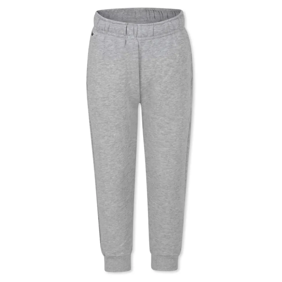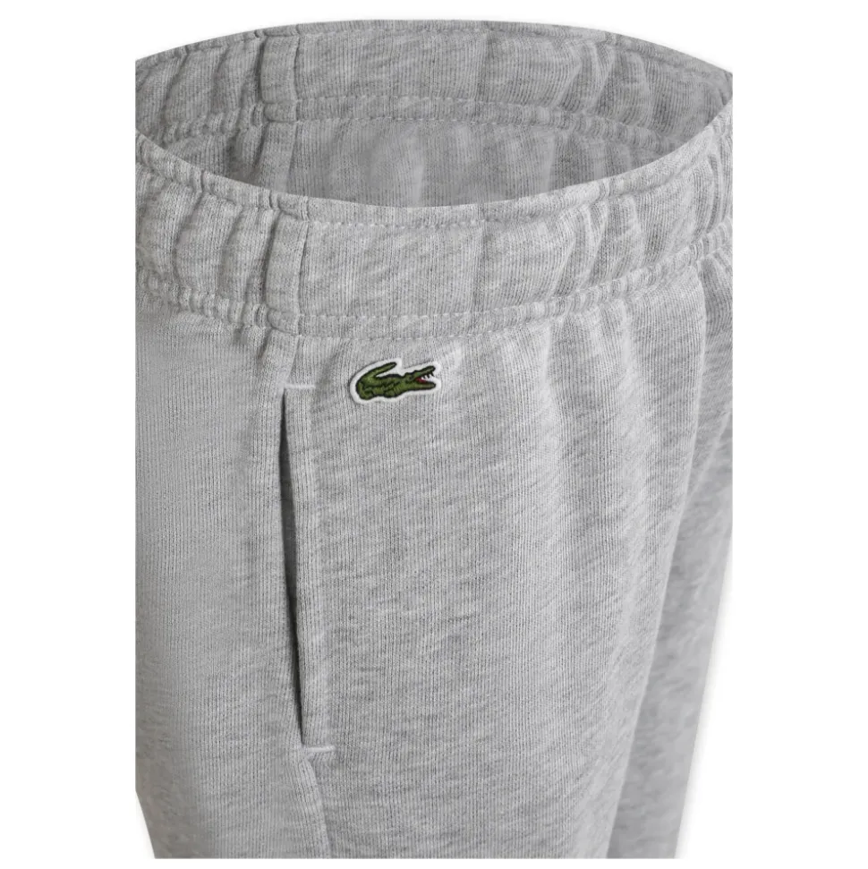 Upgrade de casual garderobe van je kleintje met deze grijze Lacoste sweatpants. Gemaakt van een comfortabele katoenmix fleece, met een elastische taille, interne trekkoord, zijzakken en geribbelde manchetten. Afgewerkt met het iconische krokodilborduursel op de voorkant. Samenstelling: 65% katoen, 35% polyester. Wasinstructies: Machinewas op 30°C.