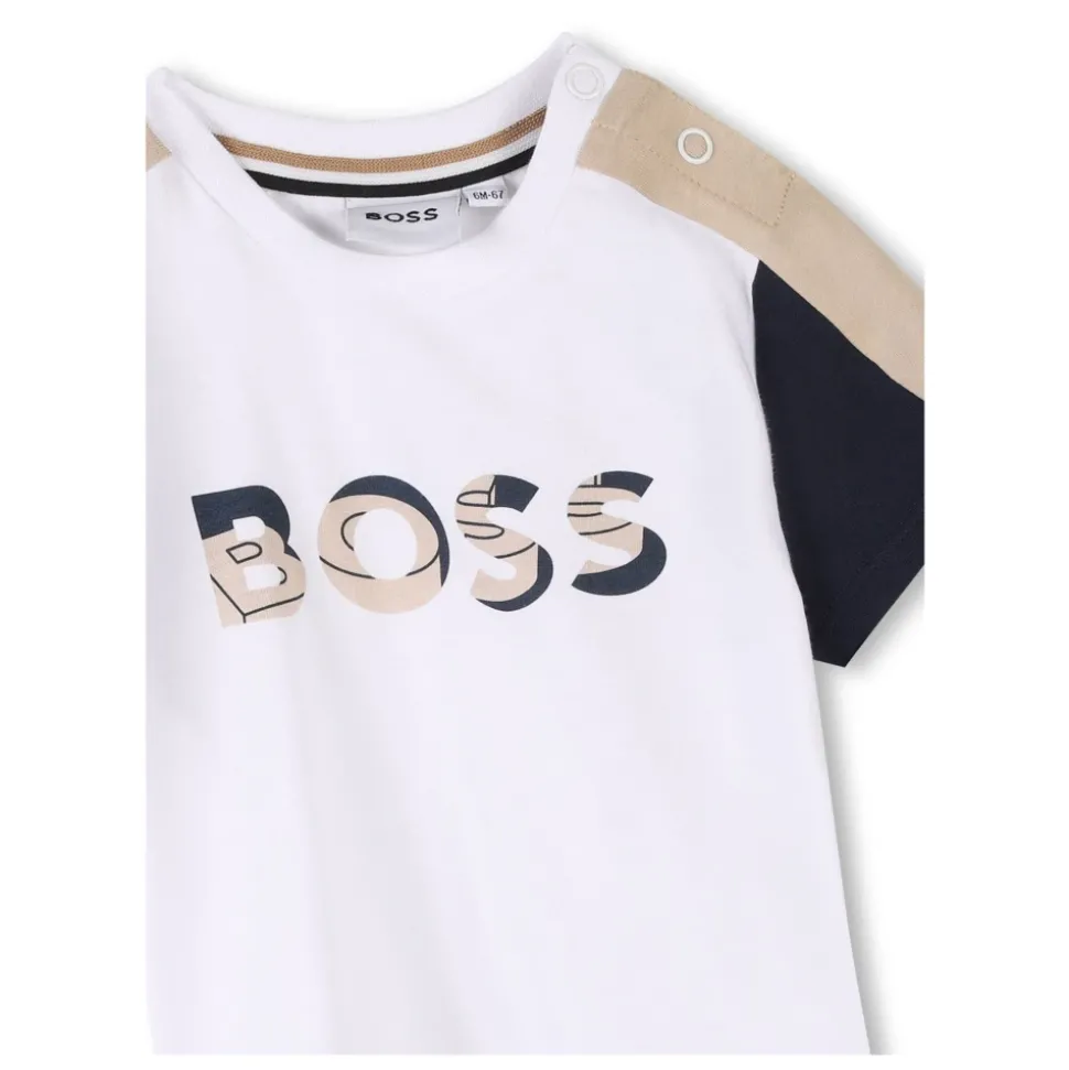Deze Hugo Boss Kids Sporty Set is een perfecte mix van stijl en comfort. De set bevat een zachte 100% katoenen jersey T-shirt met moderne details zoals schouder- en mouwuitsparingen, en het iconische BOSS-logo gedrukt op de voorkant. De bijpassende shorts hebben een elastische tailleband met het BOSS-logo elegant gedrukt onderaan. Deze set vertegenwoordigt de perfecte combinatie van sportiviteit en luxe. Voor langdurige schoonheid, volg de wasinstructies zorgvuldig. Gemaakt in India. Samenstelling: 100% Katoen – Afwerking: 87% Katoen 13% Polyester – Voering: 97% Katoen 3% Elastaan.