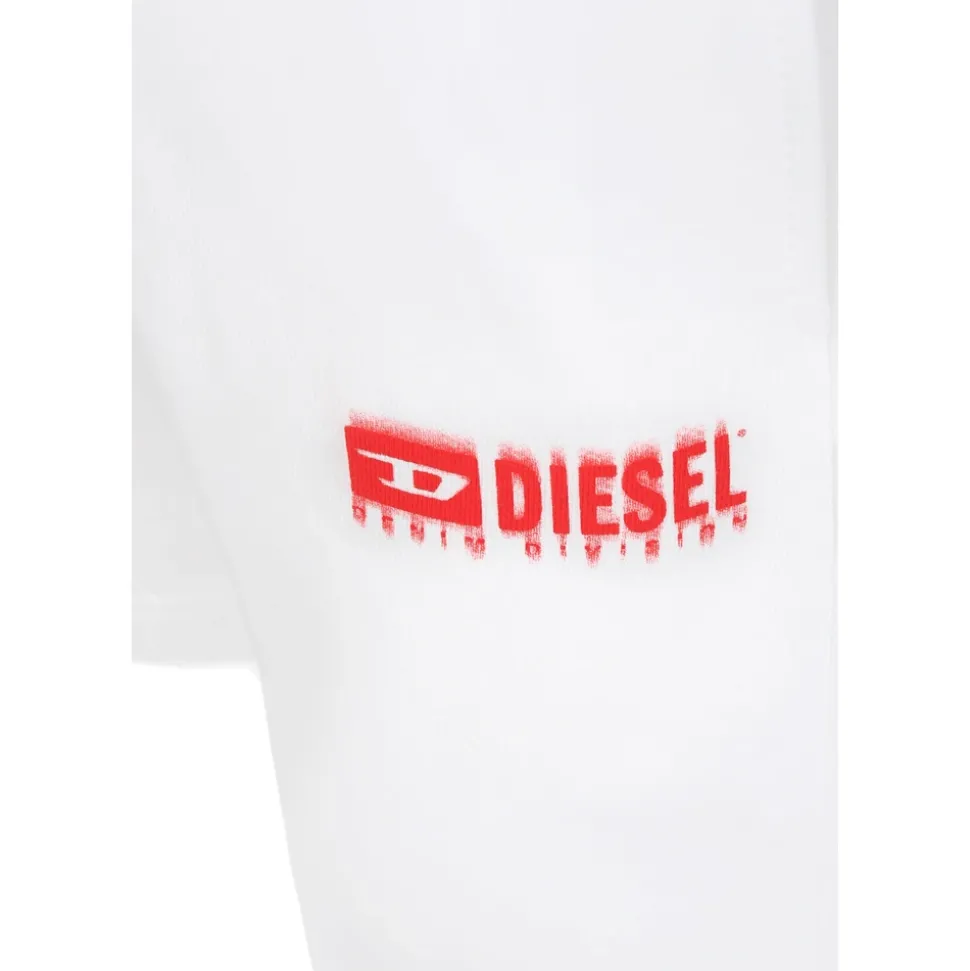 Upgrade je garderobe met de sportieve witte katoenen shorts van Diesel, ontworpen voor comfort met een elastische tailleband en trekkoord. Het rode Diesel-logo op de voorkant voegt een stijlvolle touch toe. Belangrijkste kenmerken: Wit | Katoen | Elastische tailleband | Trekkoord | Zijzakken | Rood Diesel-logo op de voorkant | Afmetingen en pasvorm: Regular fit | Samenstelling en onderhoud: 100% Katoen | Machinewas op 30°C