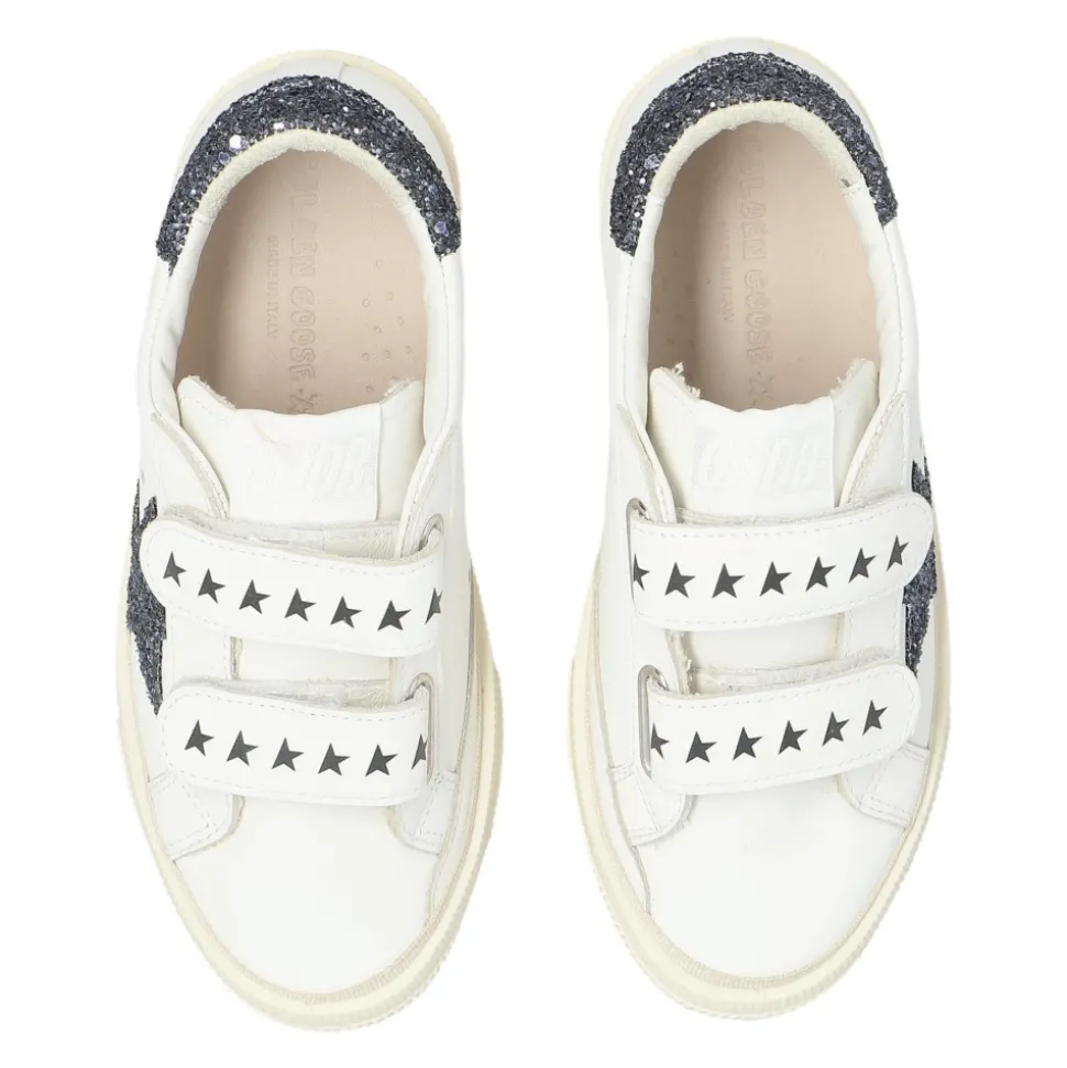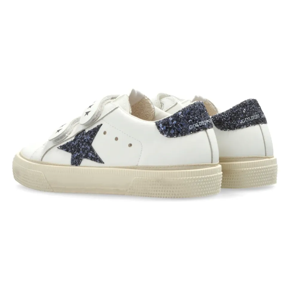 ‘MAY SCHOOL’ SPORTSCHOENEN uit de exclusieve Golden Goose kinderlijn zijn de essentie van Italiaans vakmanschap en tijdloze stijl. Deze klassieke, laag uitgesneden sneakers weten te boeien met hun uitzonderlijke vakmanschap en nauwgezette aandacht voor detail. De buitenlaag van de schoenen is gemaakt van hoogwaardig wit leer, aangevuld met intens glanzende elementen in de vorm van een marineblauwe ster en een hiel versierd met glitter. De duidelijk gedefinieerde rubberen zool benadrukt hun duurzaamheid, terwijl het interieur, gemaakt van een vriendelijk materiaal, comfort garandeert, zelfs tijdens de meest actieve dag. Dubbele brede klittenbandsluitingen, versierd met subtiele sterrenmotieven, zorgen voor gemak en eenvoud bij het aantrekken. De unieke handtekening “GGBDMAY” in een gouden tint completeert het luxueuze karakter, terwijl elk detail – van de iconische ster tot het licht verouderde leereffect – de onmiskenbare geest van Golden Goose Kids weerspiegelt. WAAROM IS HET DE MOEITE WAARD OM DIT PRODUCT TE KOPEN? * Uitzonderlijk vakmanschap en luxueuze materialen * Origineel ontwerp met het iconische stermotief * Handige, praktische klittenbandsluiting voor kinderen * Ongeëvenaard draagcomfort * Exclusief ontwerp ondertekend door Golden Goose Kids Zoolhoogte: 2,5 cm