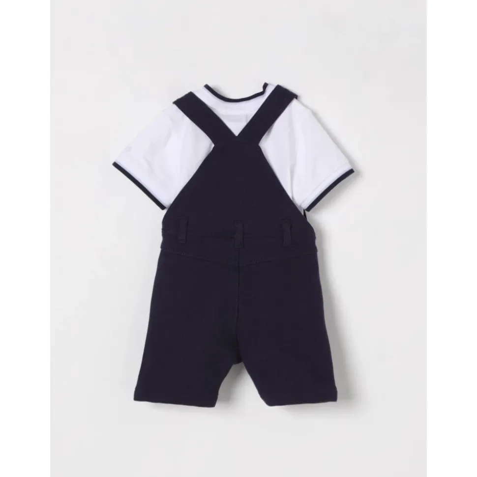 Kleed je kleintje in stijl met de Hugo Boss Romper Kids Navy. Deze hoogwaardige romper in een veelzijdige marineblauwe kleur is perfect voor elke gelegenheid en biedt zowel mode als comfort. Gemaakt van een zachte katoenmix, heeft de romper een klassiek ontwerp met donkerblauwe tuinbroek en een wit overhemd.