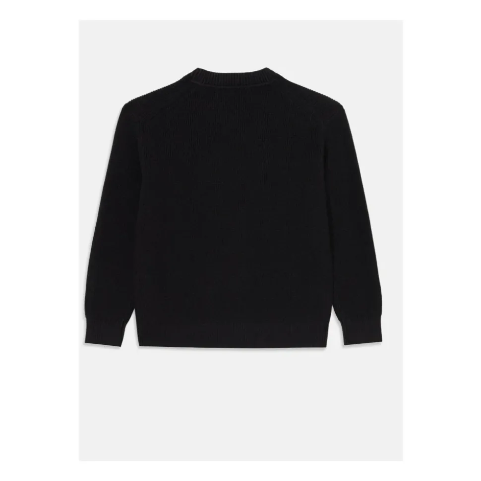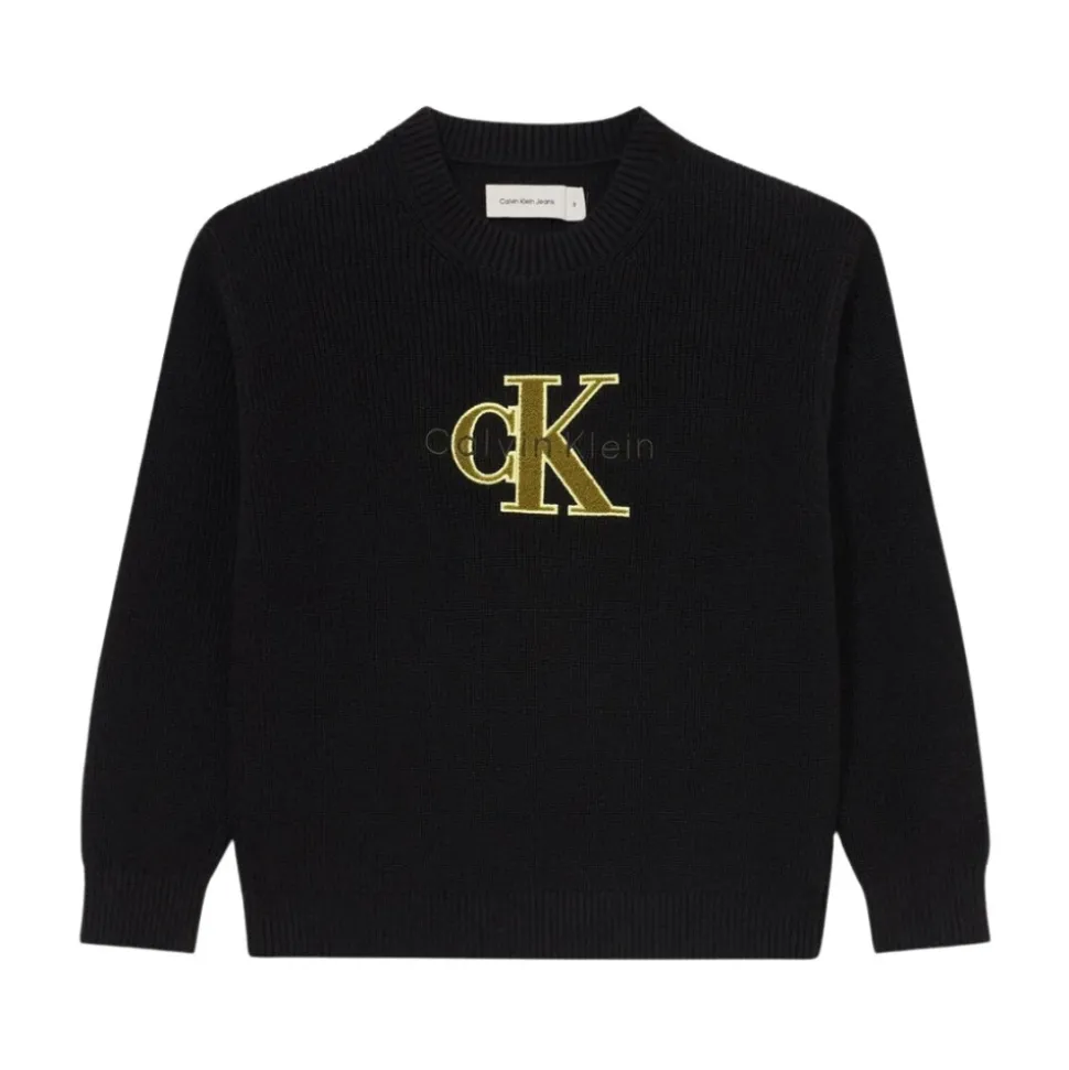Calvin Klein Jeans kindertrui, model Stitch, een warm en verfijnd stuk ideaal voor de koelere maanden. Gemaakt van 100% katoenen breisel, zorgt het voor zachtheid, comfort en ademend vermogen, met een reguliere pasvorm en klassieke stijl. Het zwarte ronde hals ontwerp heeft lange mouwen en een groot CK Calvin Klein-logo geborduurd in gouden draad op de borst, voor een moderne en elegante uitstraling. Pasvorm: regulier Lengte: normaal Halslijn: ronde hals Mouwen: lang Details: geborduurd voorlogo in goud Samenstelling: 100% katoen Verzorging: machinewas op 30° Een veelzijdige en tijdloze trui, perfect voor school, vrije tijd en casual chique looks gecombineerd met jeans of elegante broeken.