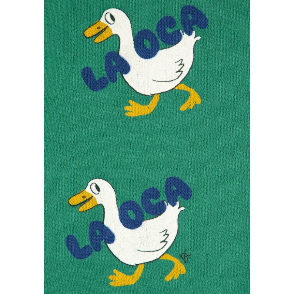 SWEATPANTS MET PRINT van Bobo Choses zijn het toonbeeld van zorgeloze kindertijd in een exclusieve editie. Ze vallen op door een klassieke, losse pasvorm met rechte pijpen en een elastische tailleband versierd met een stijlvol trekkoord, wat zorgt voor maximaal comfort en bewegingsvrijheid. Het hoogwaardige katoenmateriaal heeft een aangename, zachte en flexibele textuur, en biedt uitzonderlijke zorg voor de gevoelige huid van je kind. Het volledige ontwerp is versierd met een gedurfd, herhalend print van een witte eend en de inscriptie “LA OCA” in een diepe blauwe tint, terwijl de subtiele handtekening van de ontwerper het unieke en artistieke karakter van het product benadrukt. Het project wordt gepresenteerd door het Spaanse merk Bobo Choses, bekend om het creëren van unieke, inspirerende omgevingen voor de jongsten, waarbij de expressie en verbeelding van kinderen worden gestimuleerd. WAAROM ZOU JE DIT PRODUCT MOETEN KIEZEN? * Exclusief ontwerp en artistieke print * Natuurlijk, zacht en huidvriendelijk materiaal * Comfortabele, relaxte pasvorm met functionele details * Geschikt voor de gevoelige huid van kinderen * Uniekheid ondersteund door het prestige van het merk Bobo Choses