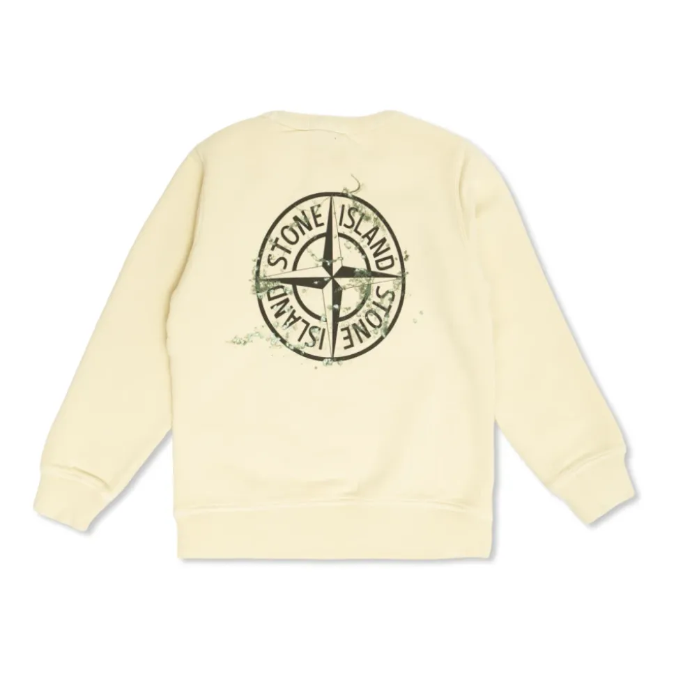 STONE ISLAND JUNIOR LOGO SWEATSHIRT belichaamt de essentie van verfijnde kinderstijl. Gehuld in een crèmekleurige tint, boeit het met zijn voortreffelijke vakmanschap van zacht, premium katoenen gebreid materiaal, wat zorgt voor uitzonderlijk draagcomfort. De klassieke, rechte snit wordt aangevuld met praktische geribbelde manchetten en zoom, wat zorgt voor een perfecte pasvorm en onbeperkte bewegingsvrijheid. Een uniek detail verdient speciale aandacht – een discreet STONE ISLAND-logo op de borst, vergezeld van een indrukwekkend, groot logo op de achterkant. Ze zijn artistiek verfraaid met opzettelijk verouderde verkleuringen in subtiele tinten groen en blauw, wat een onderscheidende, ontwerper-look en karakter toevoegt aan het gehele stuk. WAAROM IS DIT PRODUCT HET WAARD OM TE KOPEN? * Premium materiaal garandeert comfort en duurzaamheid * Uitzonderlijk ontwerp en minutieus vervaardigde details * Veelzijdige, comfortabele pasvorm – perfect voor elke gelegenheid * Exclusieve uitstraling bevestigd door het prestige van het merk Stone Island Junior
