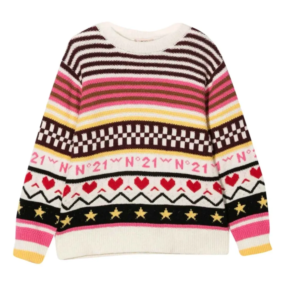 Shop de nieuwste N21 Kids sweatshirt voor jongens. Deze rode multicolor sweater heeft een fair isle inlay, ronde halslijn en lange mouwen. Gemaakt van 70% wol en 30% nylon, is deze sweater perfect om je kleintje warm en stijlvol te houden.