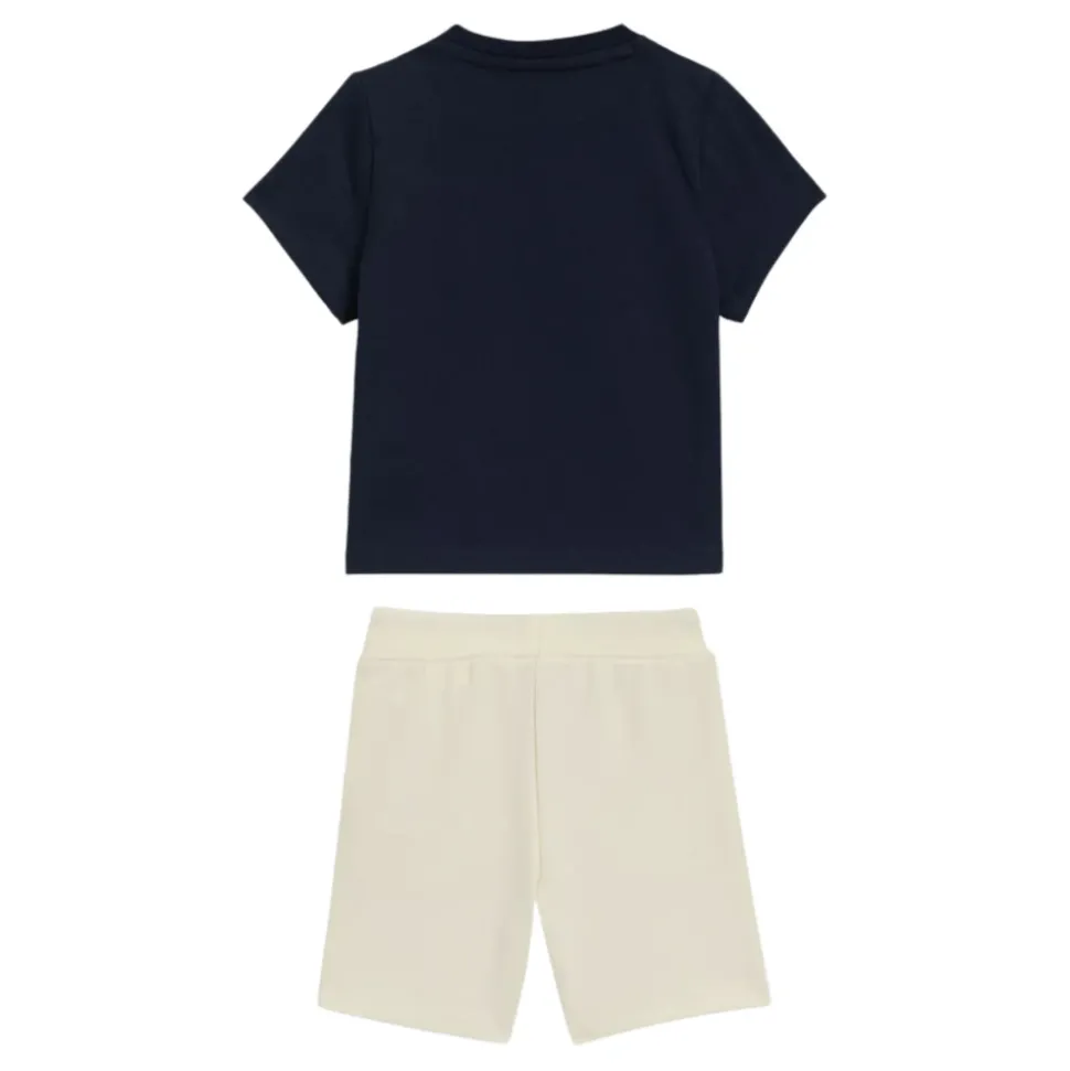 Hugo Boss T-shirt en shorts van een katoenmix. Een praktische alledaagse set bestaande uit een T-shirt met ronde hals en drukknoopsluitingen op de schouder en bijpassende Bermuda shorts met een elastische tailleband en logo details. Belangrijkste kenmerken: Multicolor | Blu | Sabbia | Katoen | Drukknoopsluitingen op de schouder | Elastische tailleband | Zijzakken | Ronde hals | Korte mouwen | Contrasterende logo print op de borst | Bijpassende Bermuda shorts | Afmetingen & pasvorm: Regular fit | Samenstelling & onderhoud: 60% katoen | 40% polyester