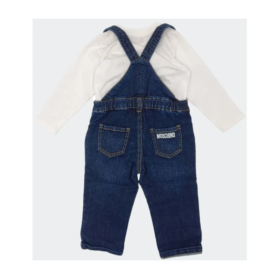 De Moschino T-shirt en tuinbroekset van katoen combineert een denim tuinbroek met een T-shirt met lange mouwen en ronde hals, met een centraal logo en een teddybeerflap. De tweedelige outfit is ontworpen voor de koelere seizoenen en biedt gemakkelijk te onderhouden draagbaarheid. Belangrijkste kenmerken: Multicolor | Bianco | Denim | Geschikt voor de winter | Machinewasbaar op 30°C | Tweedelige set | Ronde hals | Lange mouwen | Centraal logo op T-shirt | Teddybeerflap op de tuinbroek | Denim tuinbroek | Samenstelling & onderhoud: 100% katoen | Machinewas op 30°C; niet strijken; niet wassen met lichte kleuren; geen bleekmiddel gebruiken.