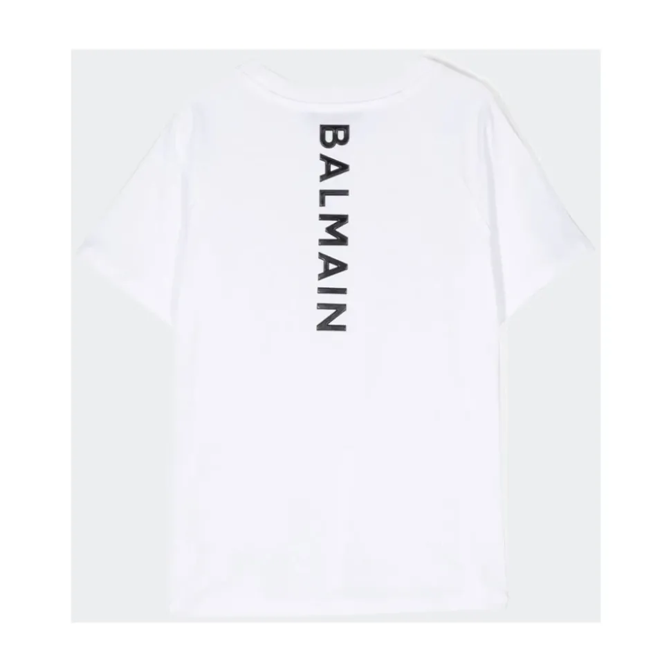 Balmain T-shirt met ronde hals en korte mouwen is een lichtgewicht T-shirt met korte mouwen en ronde hals van Balmain, ontworpen voor warm weer en dagelijkse laagjes. Belangrijkste kenmerken: Wit | Bianco | Katoen | Lichtgewicht | Geschikt voor warm weer | Machinewas 30°C | Niet wassen met lichte kleuren | Geen bleekmiddel gebruiken | Ronde hals | Korte mouwen | Samenstelling & onderhoud: 100% Katoen | Machinewas 30°C; niet strijken; niet wassen met lichte kleuren; geen bleekmiddel gebruiken.