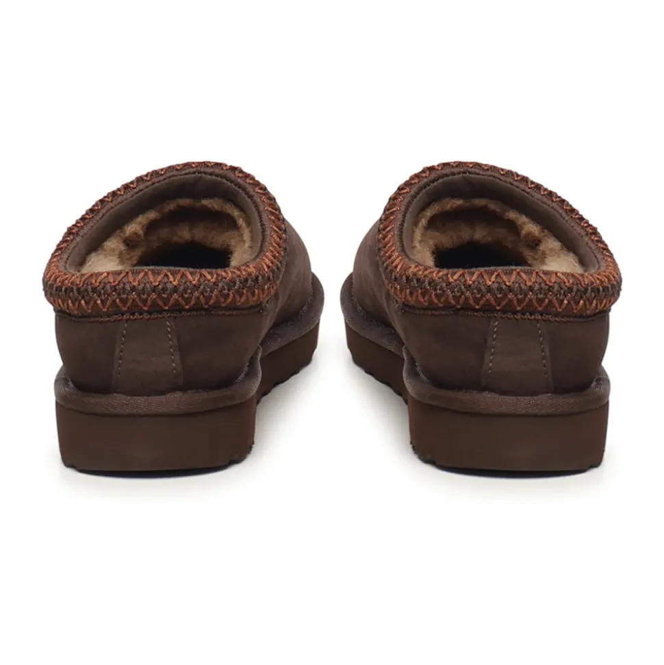 UGG Tasman II Slippers combineren een slip-on silhouet met een laag profiel met een zachte schapenvachtvoering voor comfortabel dragen binnenshuis en buitenshuis. Belangrijkste kenmerken: Bruin | Verbrand cederhout | Suède | buitenzool van suikerriet EVA, geschikt voor gebruik binnen en buiten | Lichtgewicht demping | Zachte schapenvacht- en wollen voering voor thermisch comfort | Slip-on model | 17 mm schapenvacht binnenzool en vampvoering | Warmtegeperst logo op de zijkant | Geborduurd vlechtwerk rond de kraag (UGGbraid) | Slip-on silhouet met laag profiel | Suède bovenwerk | Afmetingen en pasvorm: Valt normaal qua maat; bij twijfel tussen twee maten, overweeg een maat groter te nemen | Samenstelling en onderhoud: Suède bovenwerk | Schapenvacht voering en binnenzool | Wol (voeringcomponenten) | Suikerriet EVA buitenzool | Polyester vlechtwerk en textielbinding.UGG`s zitten in het begin soms strak, maar de voering kan uitrekken naarmate u ze vaker draagt. We raden u aan uw gebruikelijke maat te kiezen.