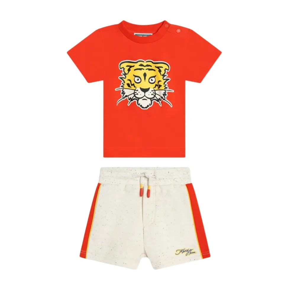 De Kenzo Tiger T-Shirt en Shorts Set combineert de iconische tijgerprint van het merk met een zachte katoenen constructie voor comfortabel dagelijks gebruik. Belangrijkste kenmerken: Multicolor | Rosso | Katoen | Zachte katoenen jersey | Stretchy stof | Elastische tailleband | Drukknoopsluiting op de schouder | Korte mouwen | Ronde hals | Tijgerprint op de voorkant | Shorts met band in bijpassende tint | Samenstelling & verzorging: 100% katoen | Afwerking: 60% katoen, 40% polyester | Voering: 97% katoen, 2% elastaan, 1% polyester | Vulling: 85% katoen, 15% polyester | Volg de wasinstructies op het waslabel in het kledingstuk.