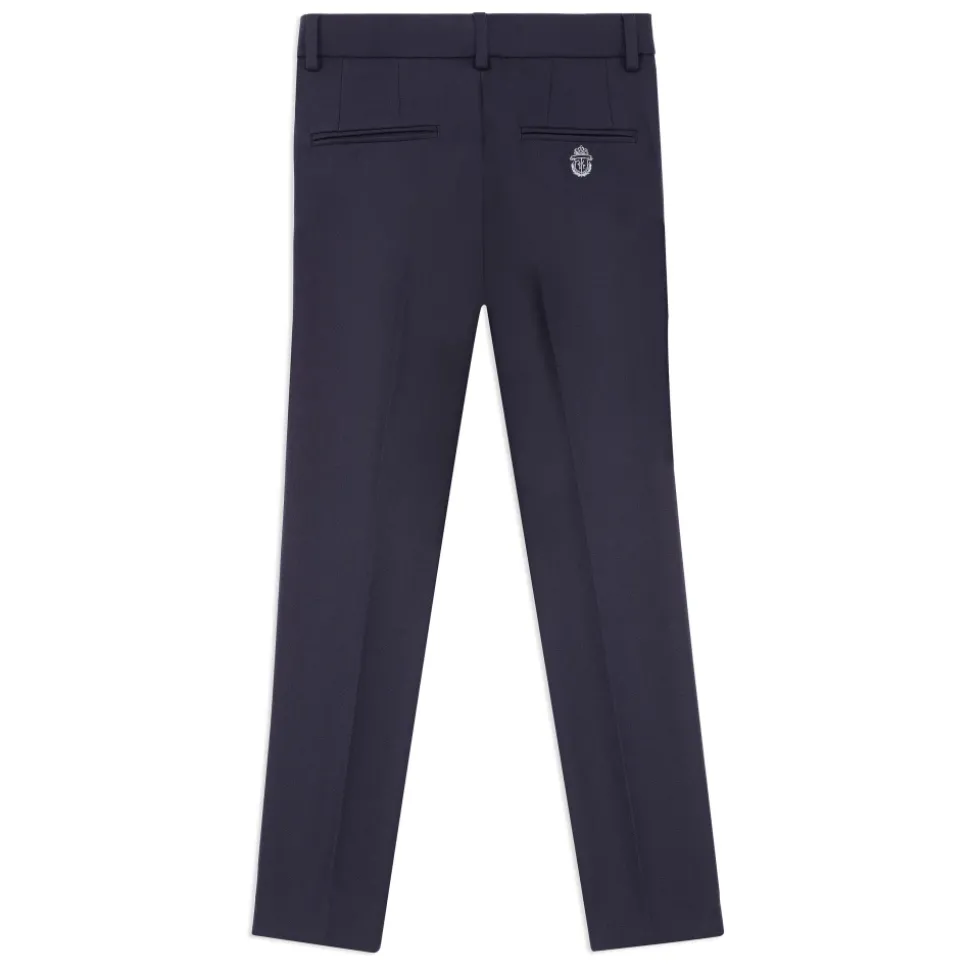Billionaire presenteert Trousers — wollen vilten broeken gesneden om de maatvoering van volwassenen te weerspiegelen, waarbij klassiek maatwerk wordt gecombineerd met praktische details voor dagelijks gebruik. Belangrijkste kenmerken: Blauw | Donkerblauw | Wol | Twee voorzakken | Twee achterzakken | Verborgen knoopsluiting in de taille | Wollen viltconstructie | Klassiek op maat gemaakt silhouet | Geborduurd Maison-embleem boven de rechter achterzak | Afmetingen & pasvorm: Gesneden volgens de pasvorm van die van volwassenen | Klassiek modelsilhouet | Samenstelling & verzorging: Wol