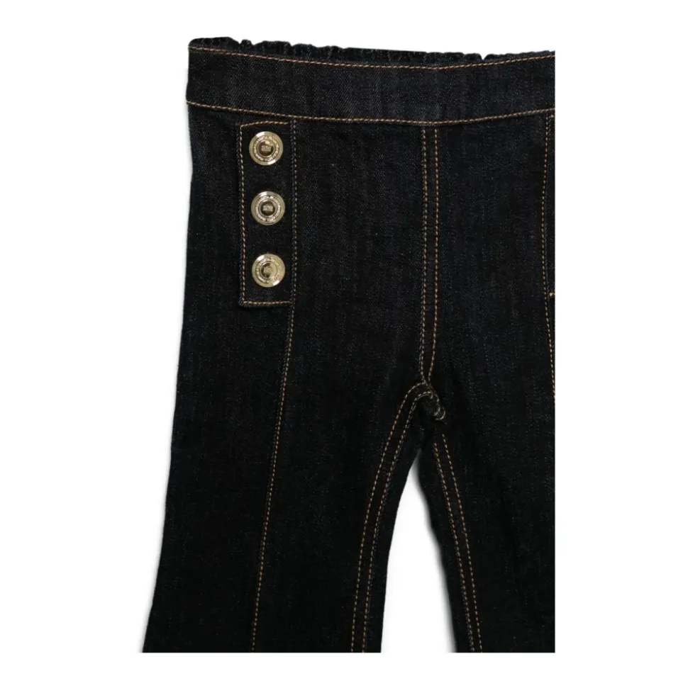 Elisabetta Franchi jeans met knoopdetails in donkerblauw, met goudkleurige knoopversiering en een elastische tailleband voor comfortabel dagelijks gebruik. Belangrijkste kenmerken: Blauw | Katoen | Stretchstof | Elastische tailleband | Decoratieve goudkleurige knopen | Donkerblauwe afwerking | Samenstelling & verzorging: 98% katoen | 2% elastaan | Machinewas