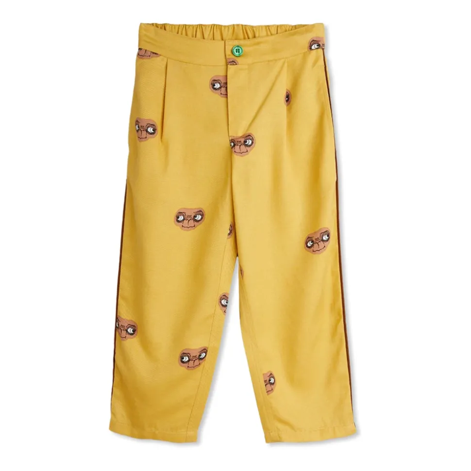De Mini Rodini Trousers met patroon combineren een opvallende illustratieve gezichtsprent met een recht, licht taps toelopend silhouet en een verstelbare tailleband voor comfortabel dagelijks gebruik. Belangrijkste kenmerken: Geel | Lyocell | Ademende stof | Gladde textuur | Kreukbestendig | Elastische tailleband achter | Verstelbare tailleband met contrasterende knoop | Detail met knoop aan de voorkant | Rechte, licht taps toelopende snit | Subtiele vouwen en delicate plooien | All-over illustratief gezichtsmotief met grote ogen | Afmetingen en pasvorm: Rechte, licht taps toelopende pasvorm | Elastische tailleband achter met verstelbare pasvorm | Samenstelling en verzorging: 100% Lyocell | Machinewas op 30°C