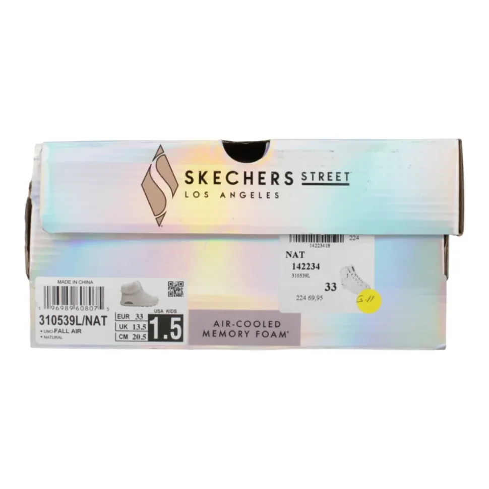 Geef je stijl een boost met de Skechers Uno-Fall Air boots, ontworpen voor modebewuste individuen die comfort en flair zoeken. Deze boots bieden een perfecte mix van modern design en functionaliteit. Belangrijkste kenmerken: Wit | Synthetisch | Waterafstotend | Ritssluiting aan de zijkant | Faux fur afwerking | Afmetingen en pasvorm: Normale pasvorm | Samenstelling en onderhoud: Synthetisch | Schoonvegen met een vochtige doek.