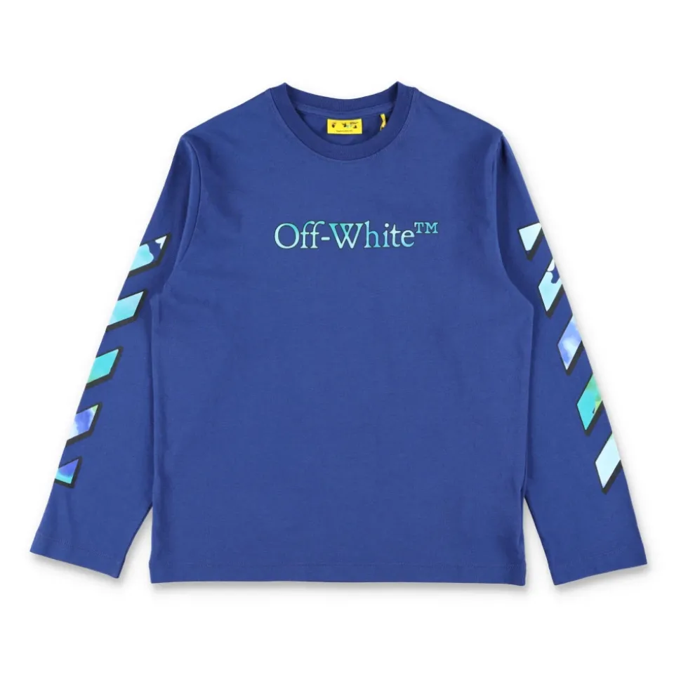 Verhoog de streetwear-stijl van je kind met dit Off-White Kids blauwe longsleeve T-shirt. Met een gedurfd logo en multicolor strepen, is dit T-shirt gemaakt van zacht katoen voor een comfortabele pasvorm. Perfect voor alledaagse urbane looks.