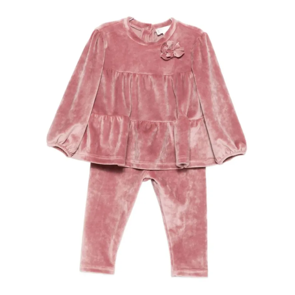Kleed je kleine jongen in stijl met deze set van twee lichtroze fluwelen broeken van Lalalù. Met lange mouwen, een ronde hals en drukknoopsluiting, gemaakt van 100% stof samenstelling.