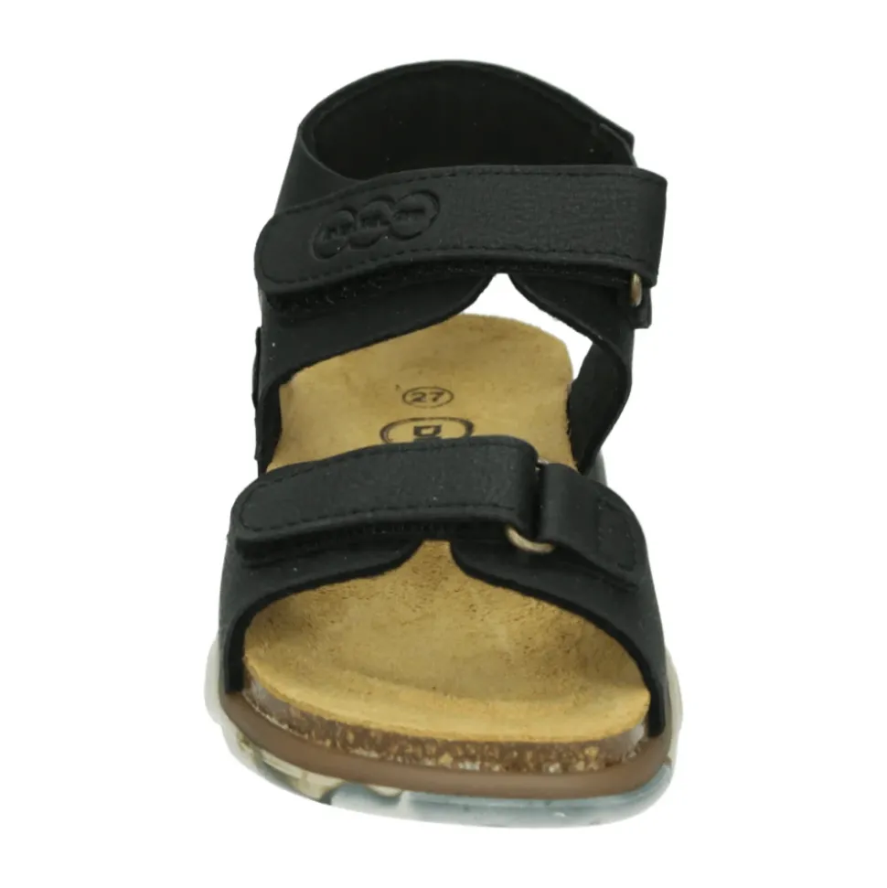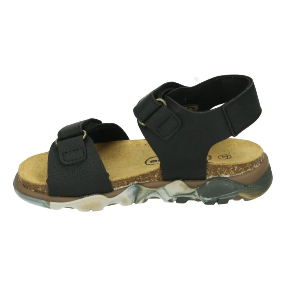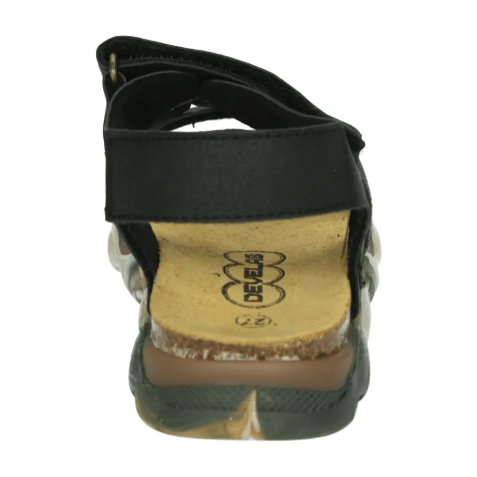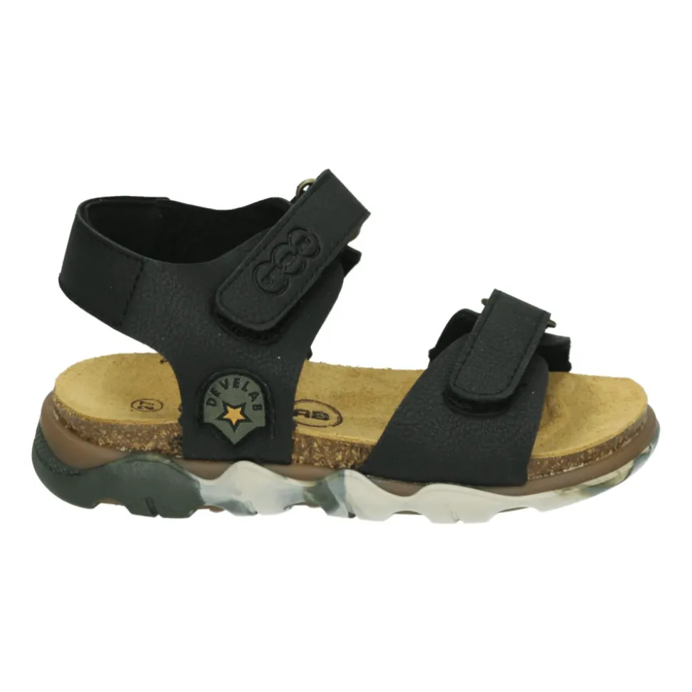 Ontdek de comfortabele en verstelbare voetbedsandaal voor jongens van het merk Develab. Modelnaam 48493 in zwart, wijdte 3, met een vast voetbed. Gemaakt van leer en stof bovenmateriaal, met een rubberen zool.