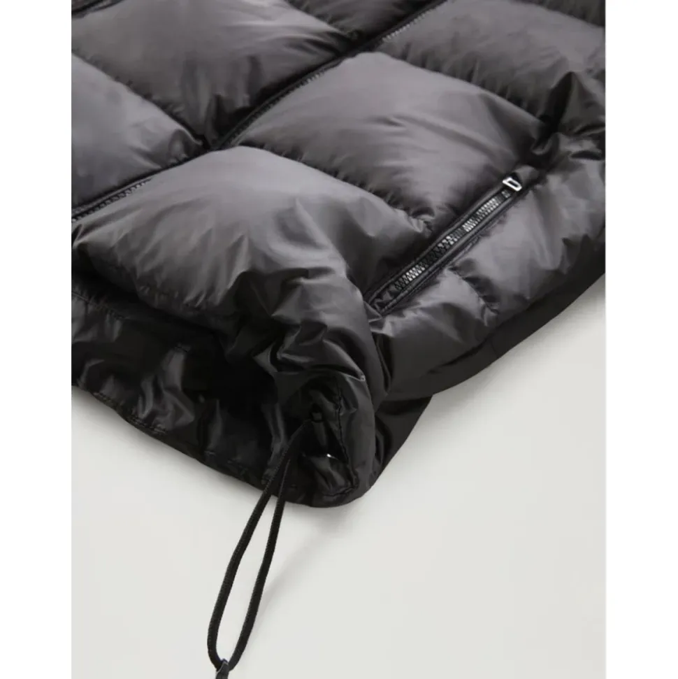 De Woolrich Winterjas is ontworpen om je warm en beschermd te houden tijdens de koude maanden. De opvallende eigenschap is de waterafstotende en windbestendige stof, perfect voor winterse omstandigheden. Belangrijkste kenmerken: Zwart | Lichtgewicht Microfiber | Waterafstotend | Windbestendig | Afneembare Capuchon | Afneembare Kraag | Voorzakken met Rits | Gebogen Onderkant | Logo Patch op Linkermouw | Afmetingen en pasvorm: Bij voorkeur te gebruiken in de winter | Samenstelling en onderhoud: 100% Polyester | 100% Polyamide | 80% Grijs Eendendons | 20% Veer | Wassen op 30°C in de wasmachine, niet strijken, niet wassen met lichte kleuren, geen bleekmiddel gebruiken