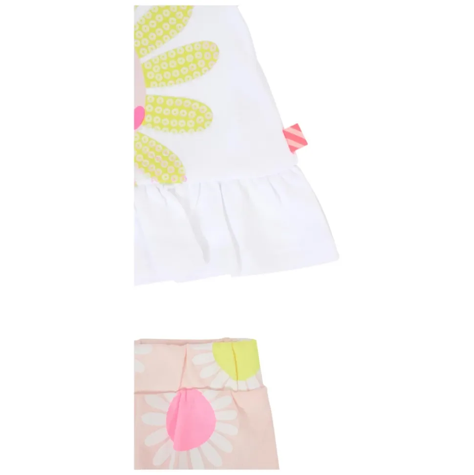 Kleed je kleine meisje in stijl met dit Billieblush witte katoenen pak. De set bestaat uit een T-shirt met korte mouwen met een schattige ruche en madeliefjesversiering, gecombineerd met roze shorts met een allover madeliefjesprint. Gemaakt van 100% katoen voor comfort en gemakkelijk onderhoud. Perfect voor speelafspraakjes of casual uitstapjes.