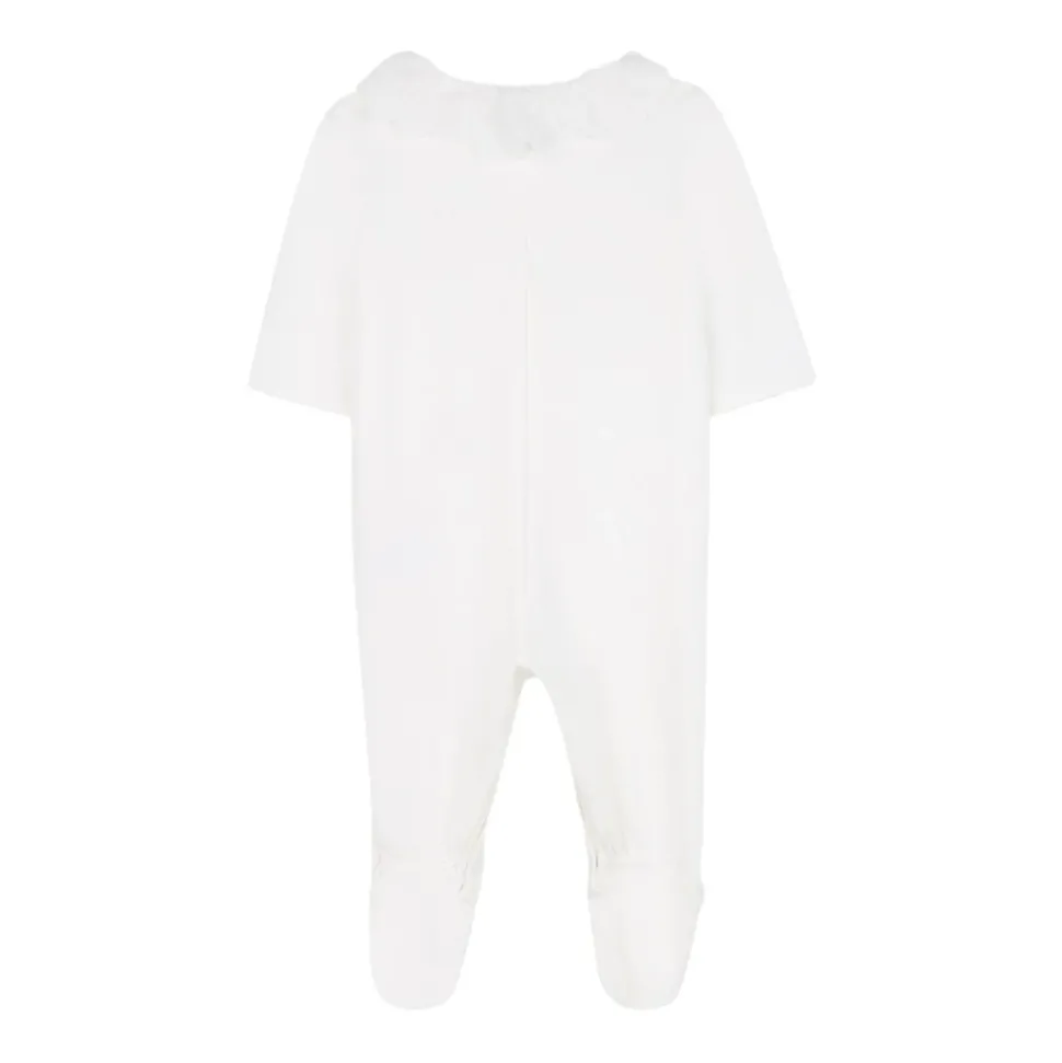 Chloé Kinderen Sets: Pyjama met ronde kraag, lange mouwen, verborgen drukknoopsluitingen aan de voorkant & linkerbeen. Slabbetjes met drukknoopsluiting. Hoed inbegrepen. Komt in een Chloé geschenkdoos. Gemaakt van 100% katoen. Gemaakt in Tunesië.