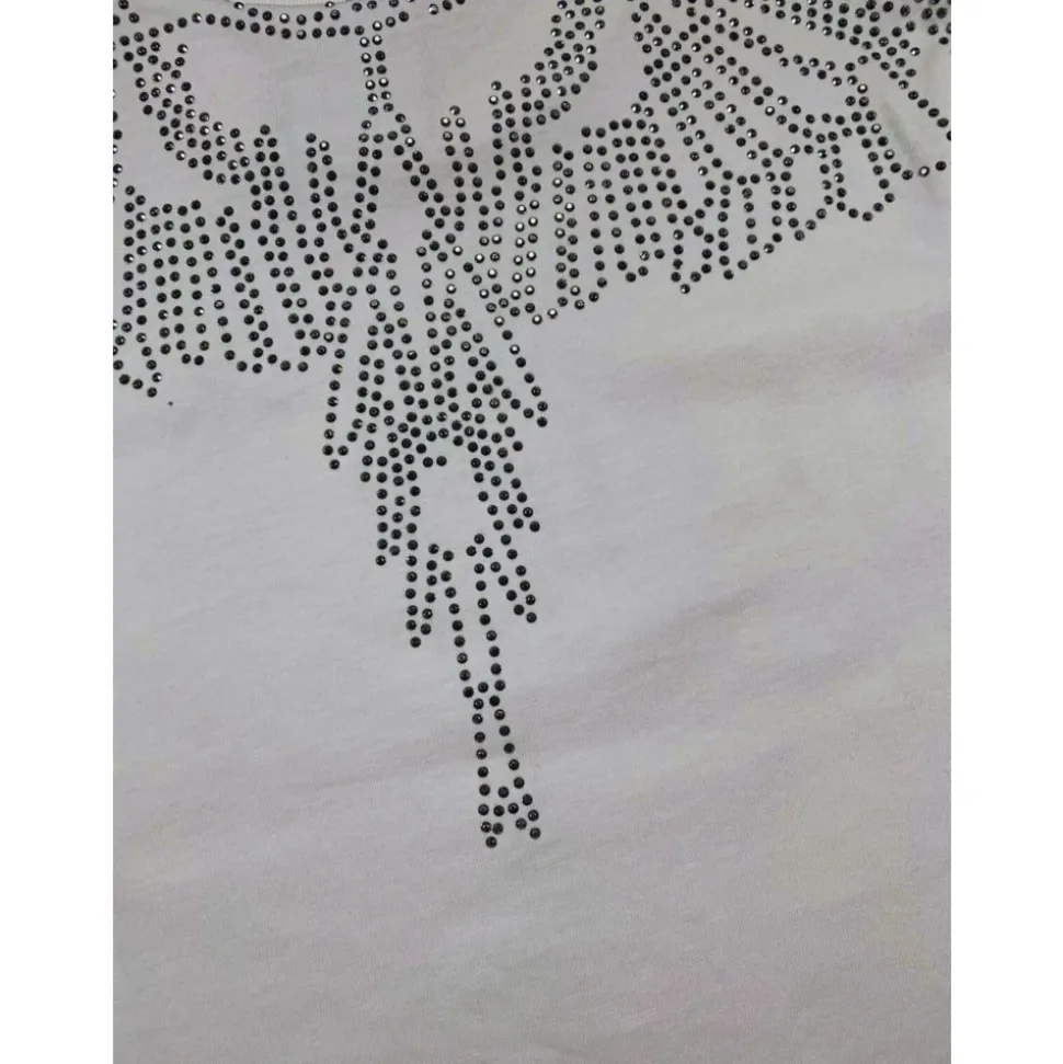Marcelo Burlon Kids wit t-shirt voor meisjes, model met ronde hals en korte mouwen, contrastprint gemaakt met strass aan beide zijden, zijlogo patch, normale pasvorm, rechte zoom. Samenstelling: 100% katoen. Gemaakt in Italië.