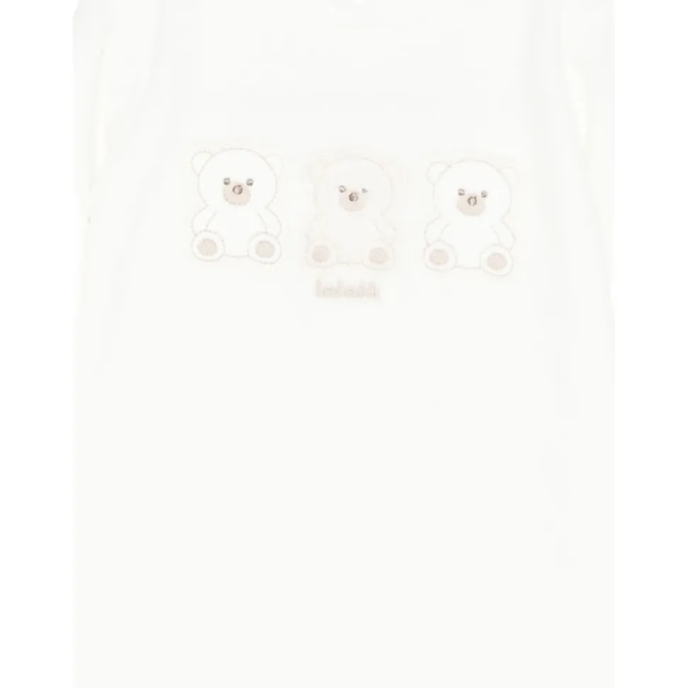 Kleed je kleine man in stijl met deze LALALU Geborduurde Romper. Met wit geborduurd detail, ronde halslijn, lange mouwen, drukknoopsluiting en voetjes. Gemaakt van 100% katoen.