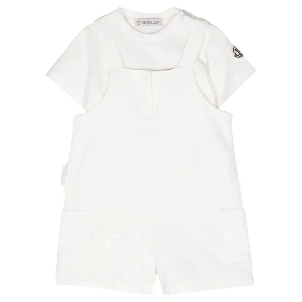Geef de garderobe van je kind een boost met deze Moncler Witte Jumpsuit Set, met een stijlvolle combinatie van een tuinbroek en een T-shirt met ronde hals. Perfect voor casual uitstapjes, deze set biedt zowel comfort als een vleugje elegantie. Belangrijkste kenmerken: Wit | 95% Katoen | 5% Elastan | Drukknoopsluiting aan de achterkant | Clipsluitingen op de schouder | Ronde hals | Korte mouwen | Contrasterend geborduurd logo | Vilt logo applicatie | Afmetingen en pasvorm: Normale pasvorm | Samenstelling en onderhoud: 95% Katoen | 5% Elastan | Machinewas koud, droogtrommel laag.