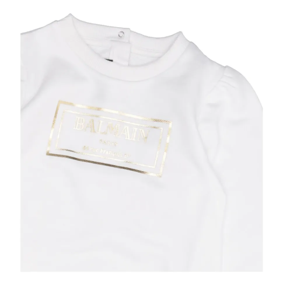 Kleed je kleine fashionista in stijl met deze Balmain Kids Body voor meisjes. Het heeft lange mouwen, een ronde hals en een handige sluiting met drukknopen aan de achterkant. De geribbelde kraag, mouwboord en onderkant voegen een trendy touch toe. Het logo-detail aan de voorkant geeft een vleugje verfijning. De afneembare culottes bieden veelzijdigheid. Gemaakt van 100% katoen, zorgt deze body voor comfort en duurzaamheid.